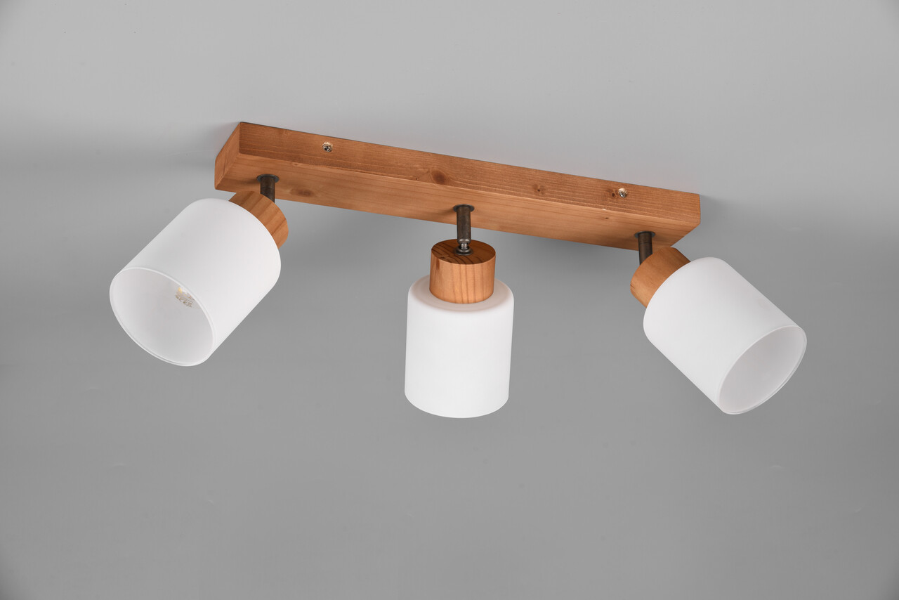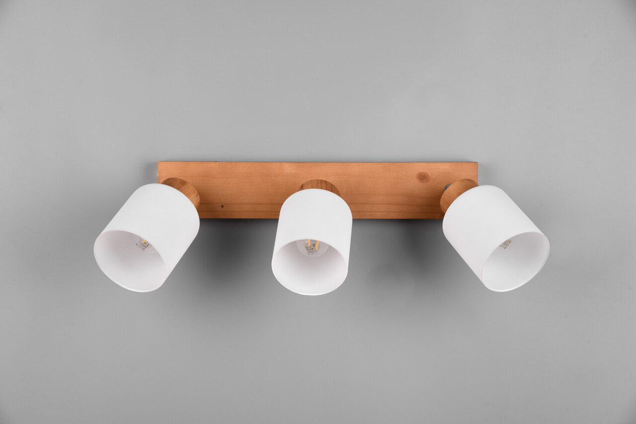 Plafoniera Assam, RL, 45x10x21 cm, 25W, 3x E14, lemn, natur/alb