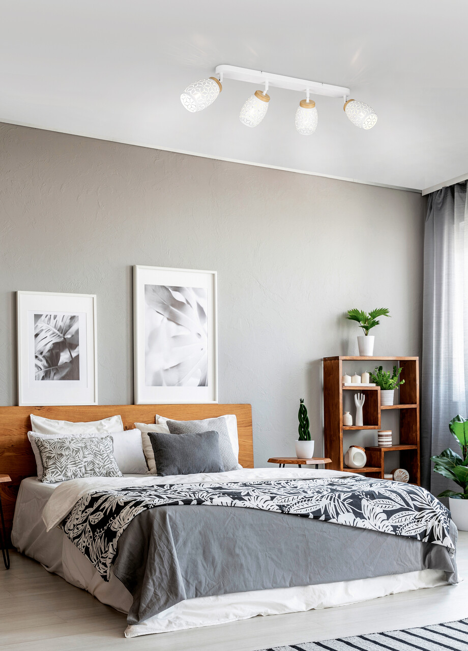 Plafoniera Bidar, RL, 74x12x27 cm, 10W, 4x E14, metal, alb mat/natur
