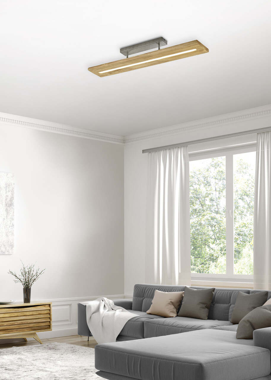 Plafoniera Brad, TRIO, 100x20x16.7 cm, 27W, 1x SMD LED, lemn, natur/gri