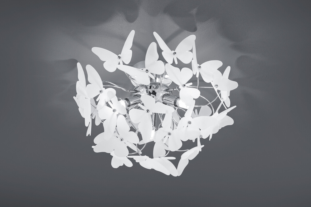 Exista nenumarate modalitati de a stabili accente de iluminat intre cei patru pereti ai locuintei dumneavoastra. Plafoniera BUTTERFLY, de exemplu, impresioneaza prin aplicatiile la moda cu design de fluture. De indata ce lumina este aprinsa, aceasta creeaza o atmosfera confortabila si va umple casa cu un joc de lumini si umbre. Lumina poate fi proiectata fie simplu si monocrom, fie cu accente colorate, folosind fluturii inclusi. Culorile variaza de la fluturi albi si cromatici pana la fluturi mov si verzi. Pentru un iluminat cu consum redus de energie, se recomanda utilizarea unui iluminator cu LED-uri. Acestea reprezinta o alternativa optima la lampile cu halogen conventionale si garanteaza o calitate ridicata a luminii si economii de energie de pana la 80%. In plus, lampile LED va ajuta sa beneficiati de o durata de viata lunga, de o generare redusa de caldura si, in acelasi timp, protejeaza mediul inconjurator.
