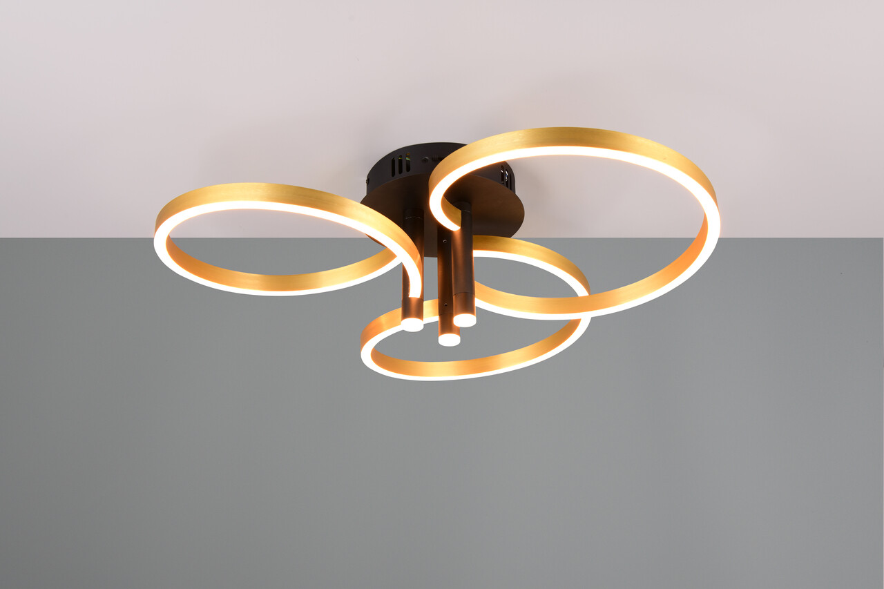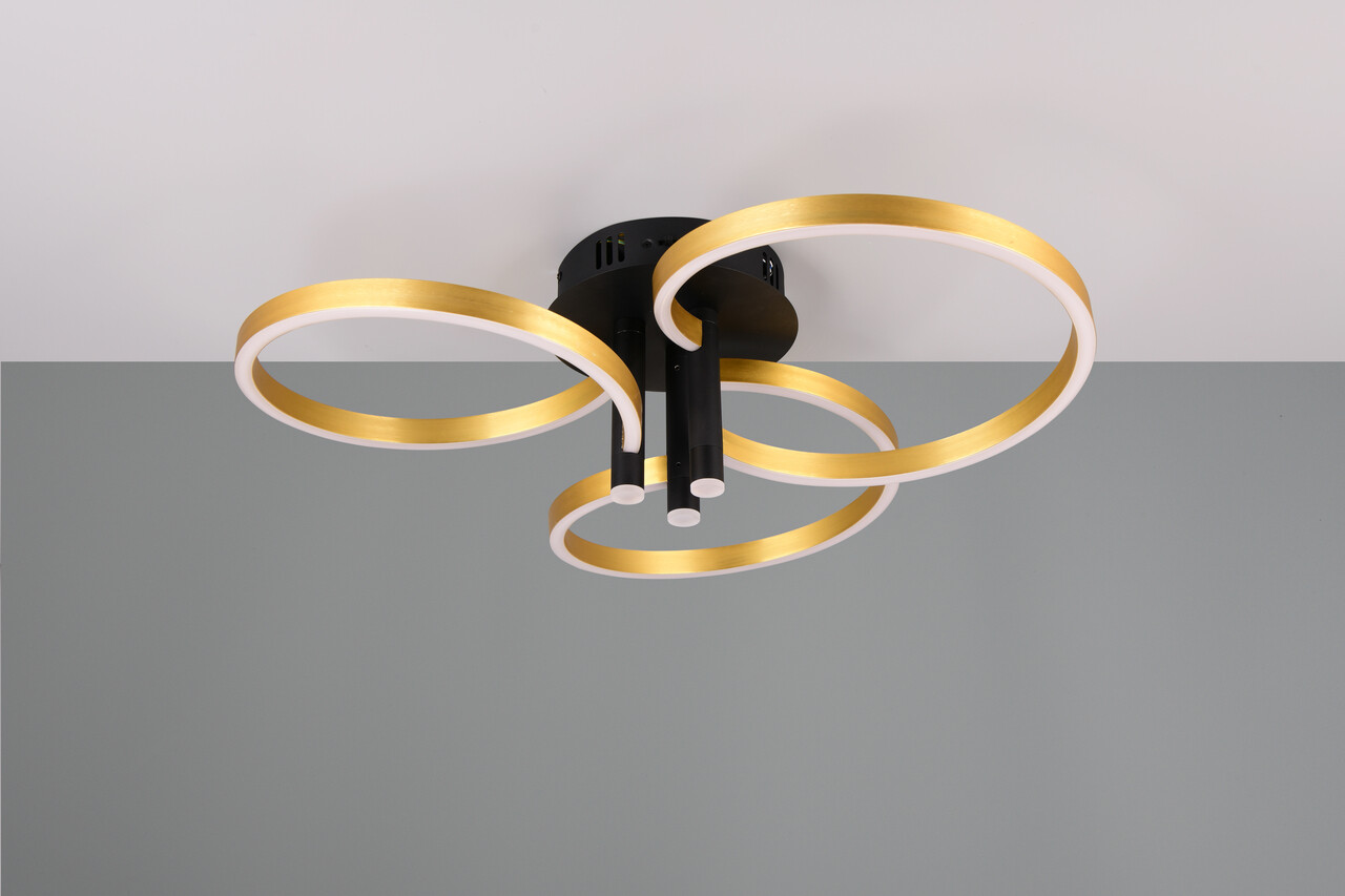 Plafoniera Caruso, TRIO, 65.5x20 cm, 43W, 1x SMD, metal, negru/auriu