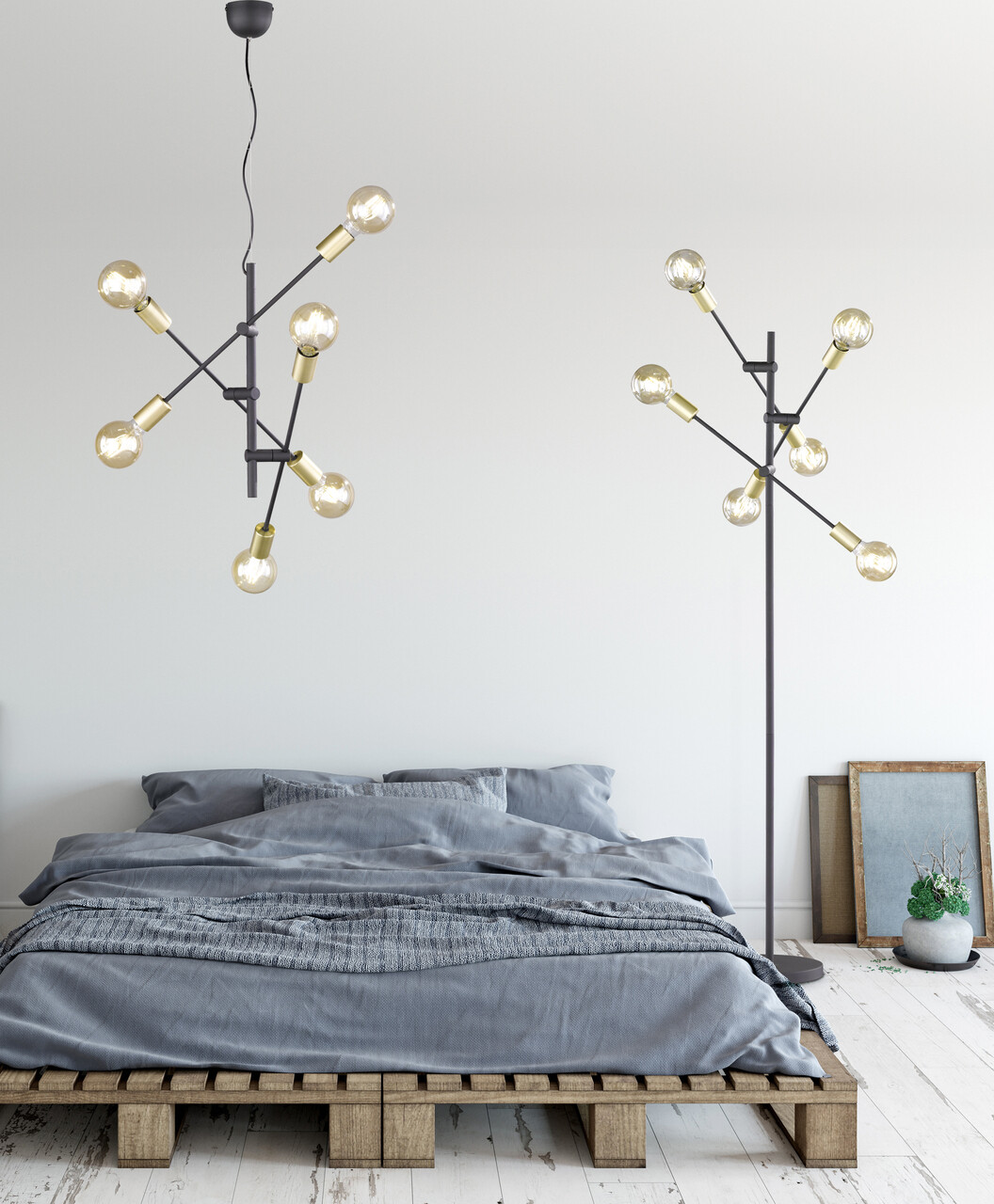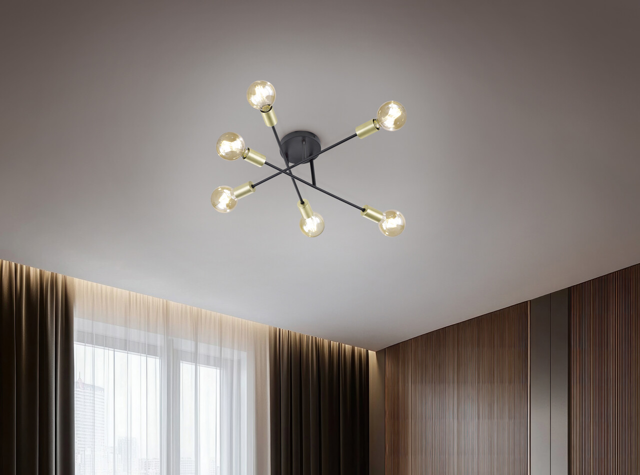 Neconventional, creativ si orientat spre design. Corpurile de iluminat minimaliste, cum sunt cele din gama CROSS, pun accente interesante si pun incaperile in lumina potrivita. Alegerea culorilor si a formelor creeaza contraste - combinate inteligent, acestea creeaza o componenta confortabila si o ambianta eleganta. Corpul de iluminat este o completare de bun gust pentru aproape orice interior si poate fi amplasat in camere de zi mai mari sau in zonele de intrare. Pentru un aspect armonios, va recomandam sa folositi o sursa de lumina cu filament, deoarece aveti o vedere directa asupra sursei de lumina. Cadrul metalic simplu, cu linii drepte, de culoare neagra mata, cu suporturi de lampa de culoare bronz, creeaza un aspect general armonios. Pentru un iluminat cu consum redus de energie, se recomanda utilizarea unui iluminator cu LED-uri. Acestea reprezinta o alternativa optima la lampile cu halogen conventionale si garanteaza o calitate ridicata a luminii si economii de energie de pana la 80%. In plus, lampile LED va ajuta sa beneficiati de o durata de viata lunga, de o generare redusa de caldura si, in acelasi timp, protejeaza mediul inconjurator.