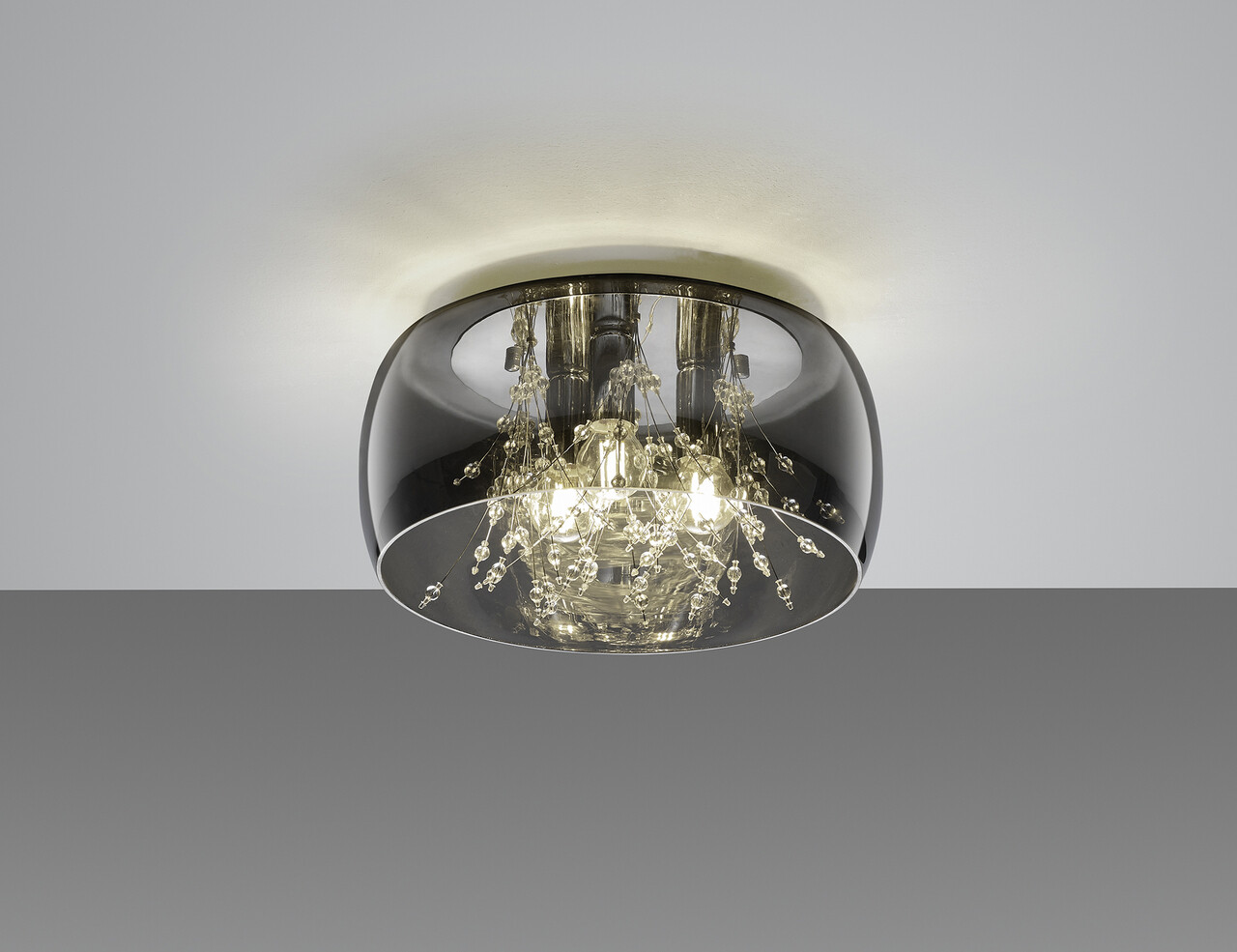Plafoniera Crystel, TRIO, 34x17.5 cm, 28W, 3x E14, sticla, argintiu