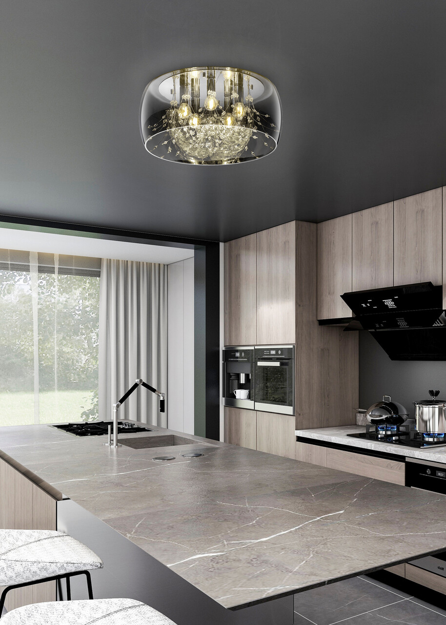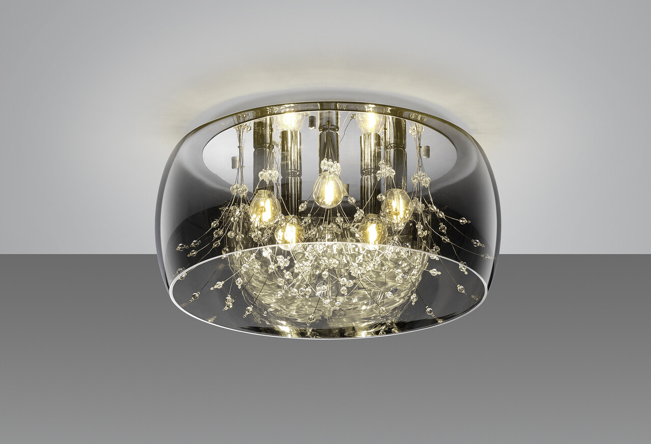 Plafoniera Crystel, TRIO, 50x23.5 cm, 28W, 5x E14, sticla, argintiu