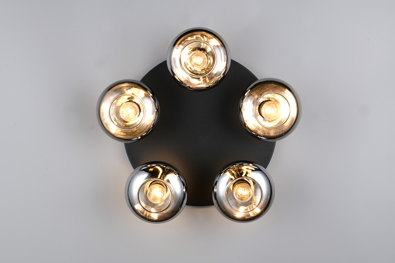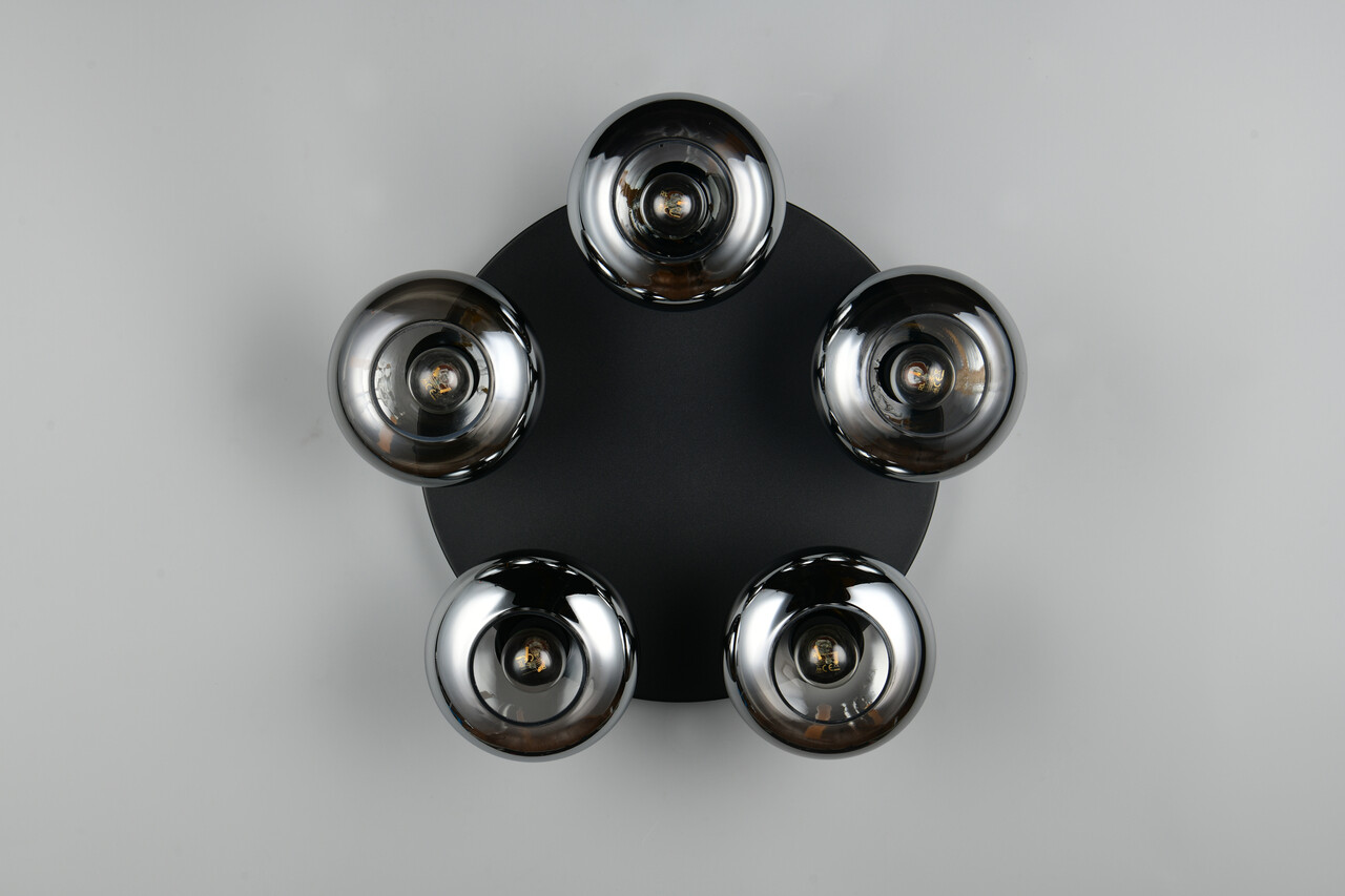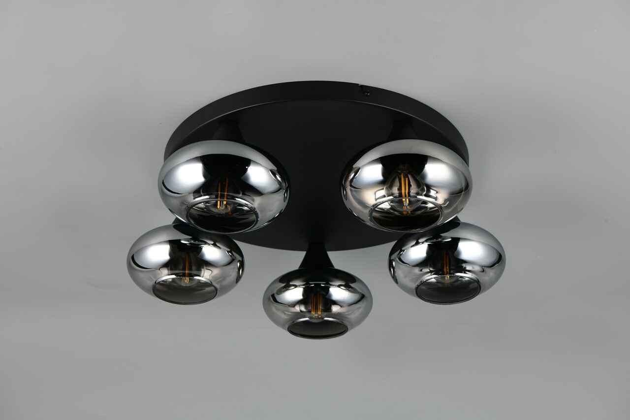 Plafoniera Divina, RL, 49x15 cm, 10W, 5x E14, sticla, negru/gri