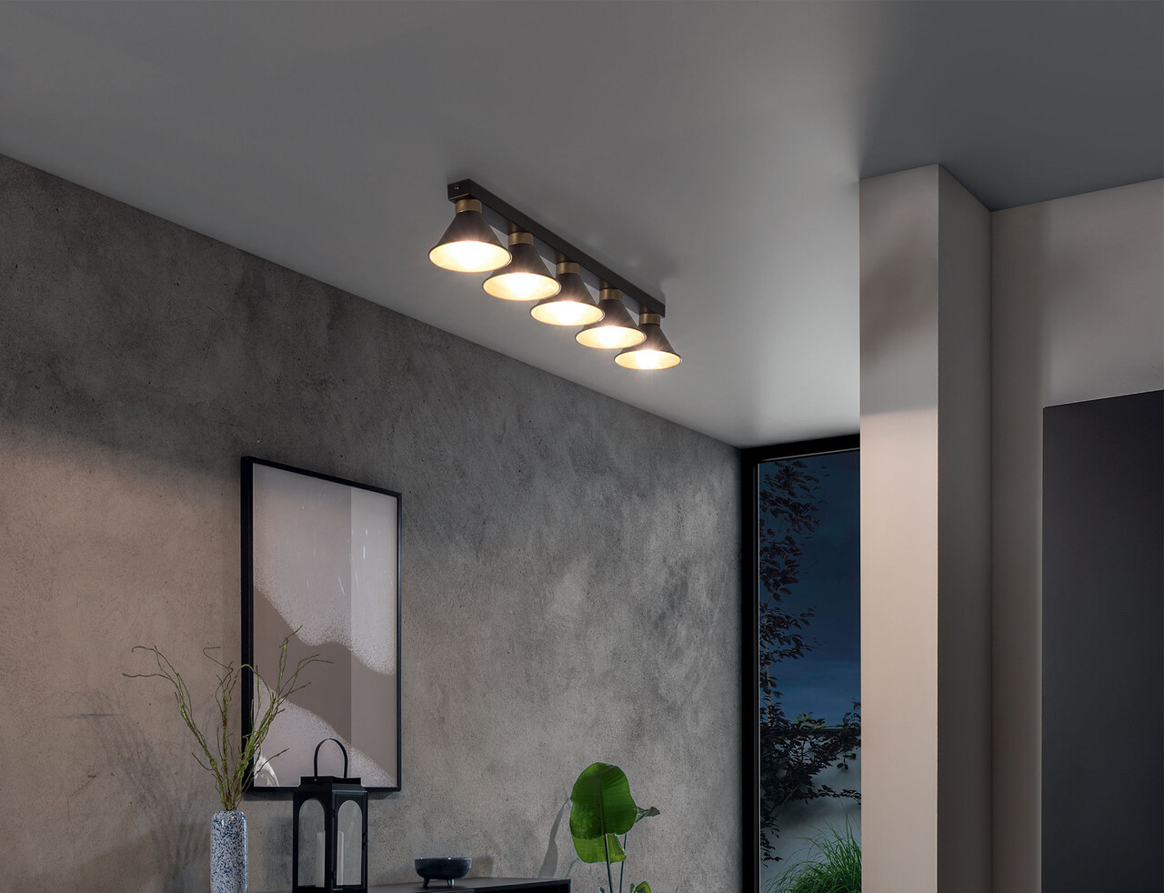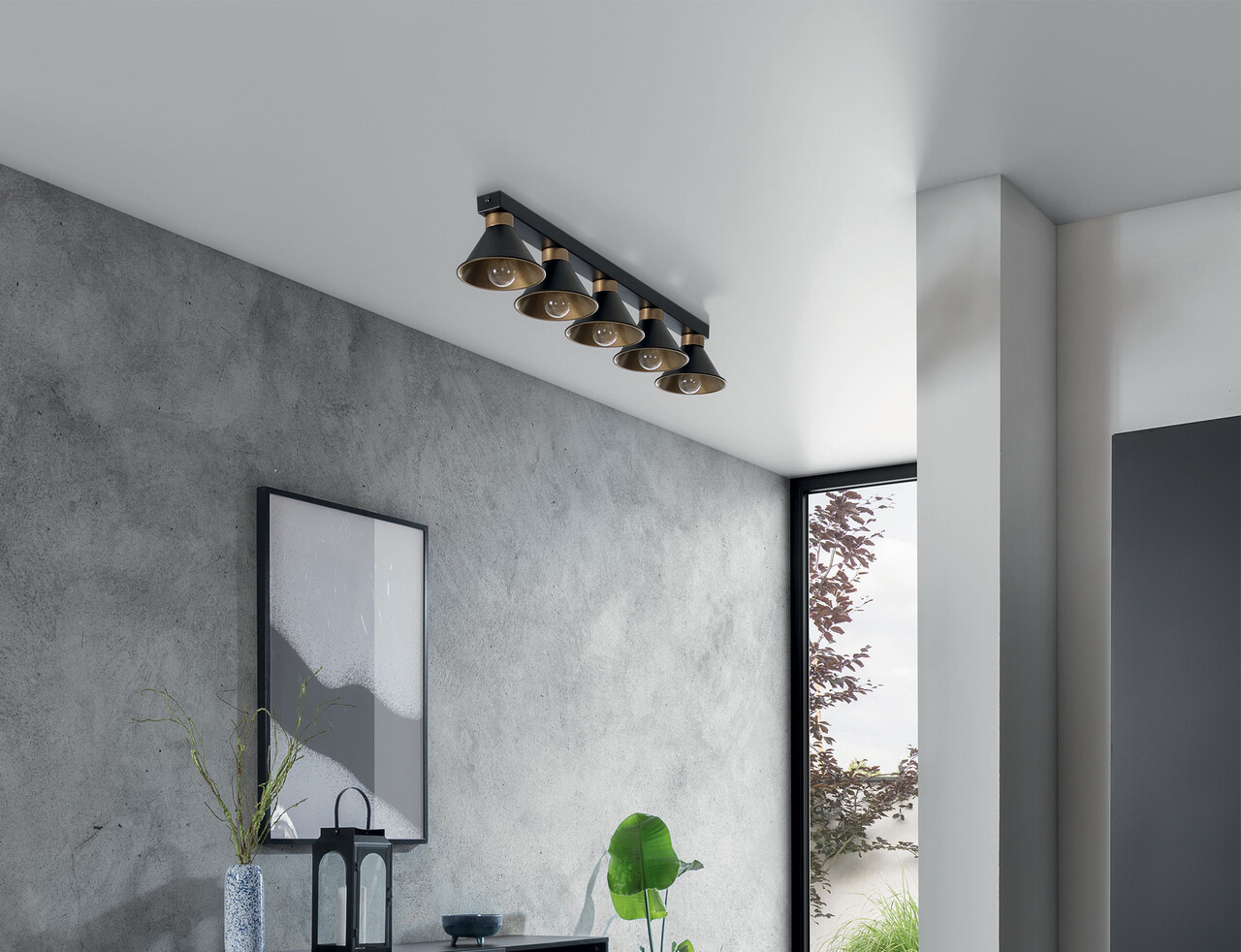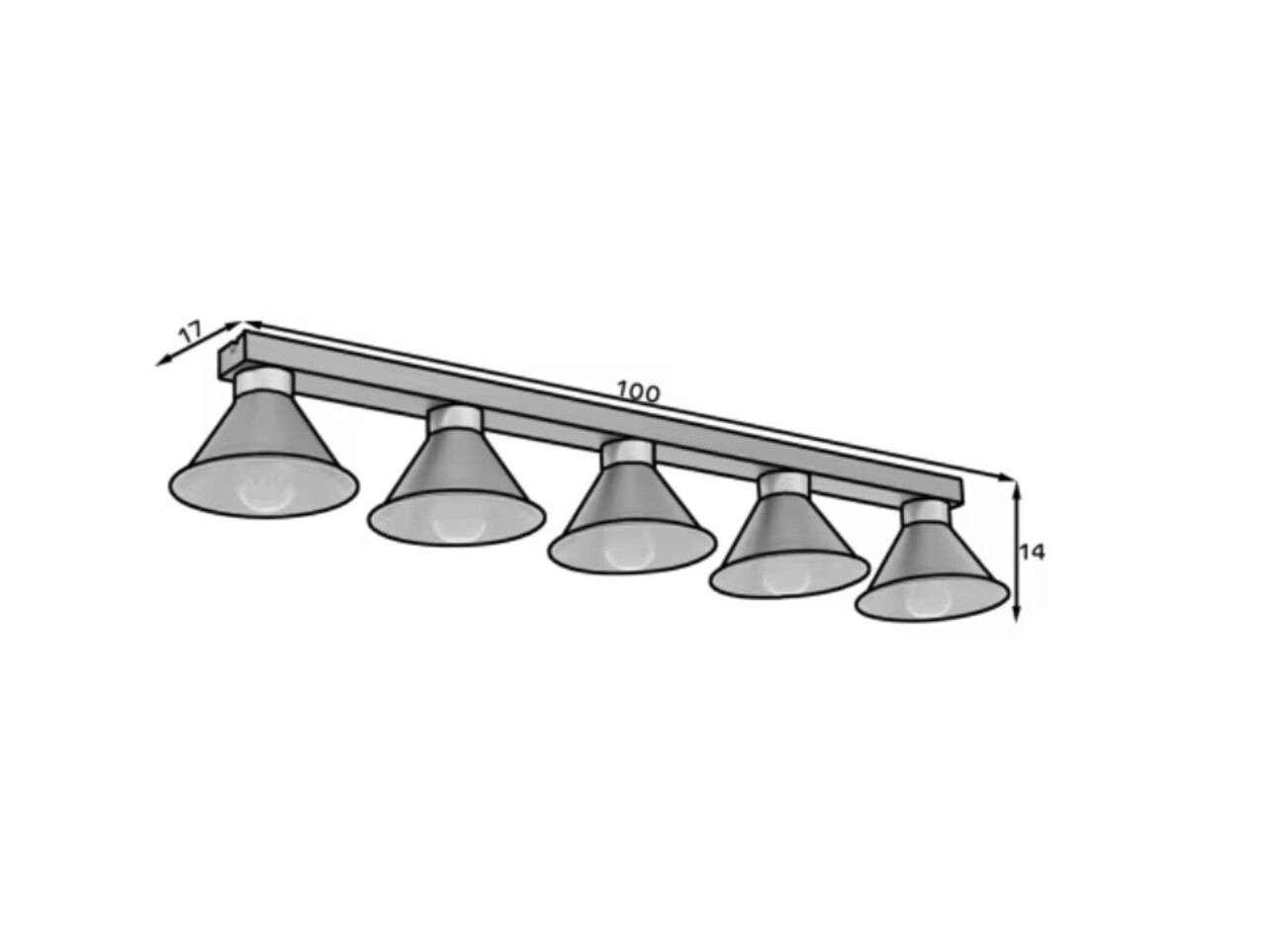 Plafoniera ELTAP, Detmer, 100x17x14 cm, 5xE27, 15W, otel, negru/auriu