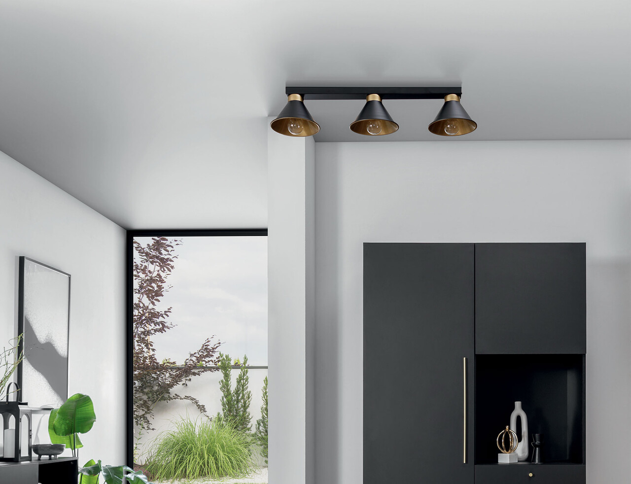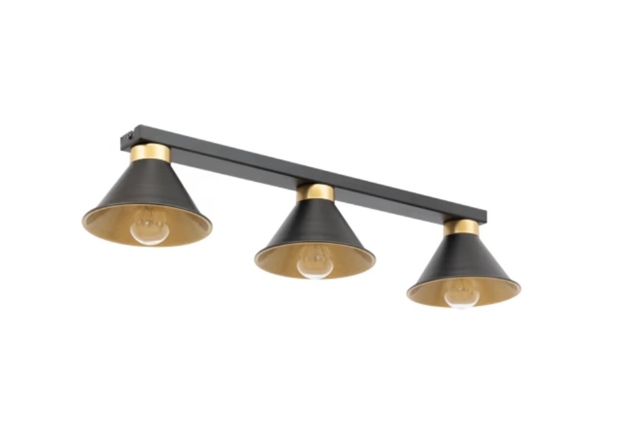 Plafoniera ELTAP, Detmer, 70x17x14 cm, 3xE27, 15W, otel, negru/auriu