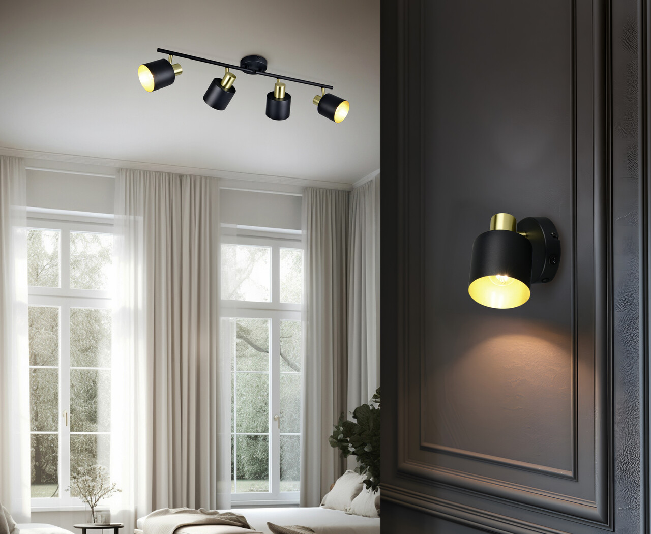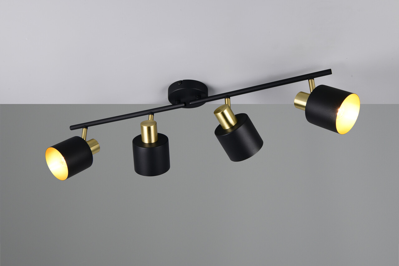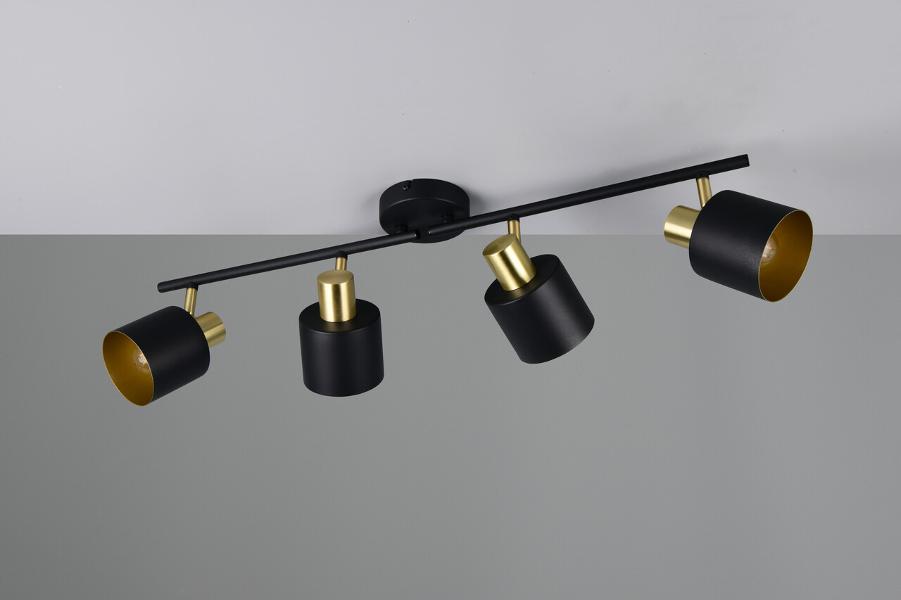 Plafoniera Eva, TRIO, 78x10x19 cm, 10W, 4x E14, metal, negru/auriu