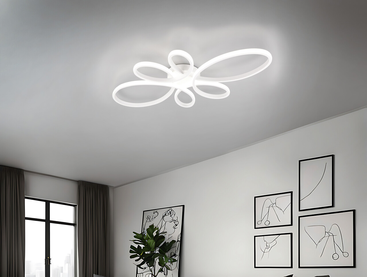 Plafoniera Fly, TRIO, 83x45.5x7.5 cm, 32W, 1x SMD, metal, alb mat