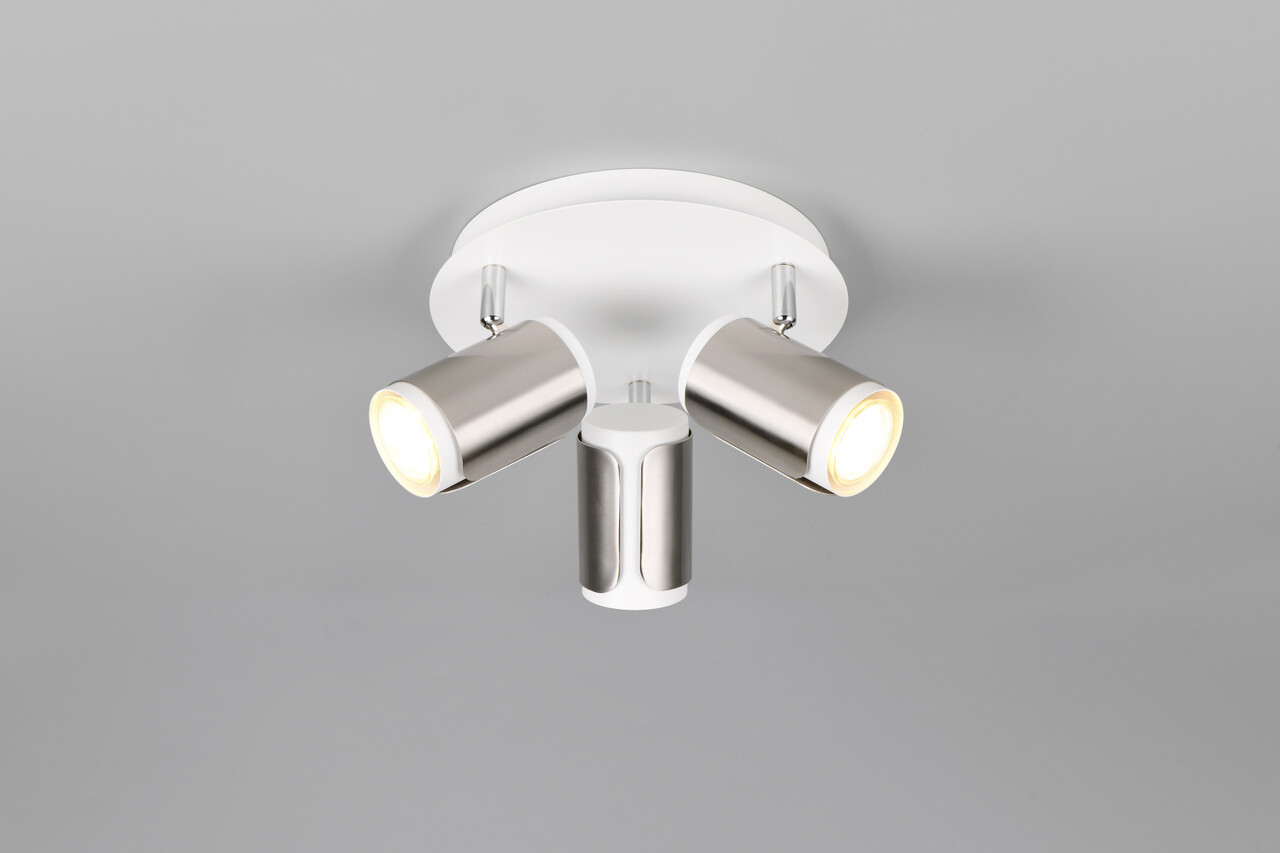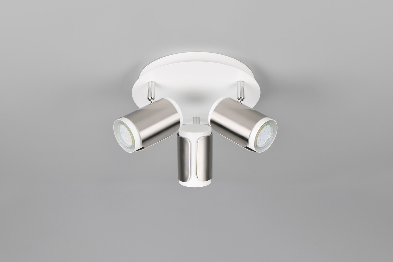Plafoniera Gillan, TRIO, 30x16 cm, 10W, 3x GU10, metal, nichel mat/alb