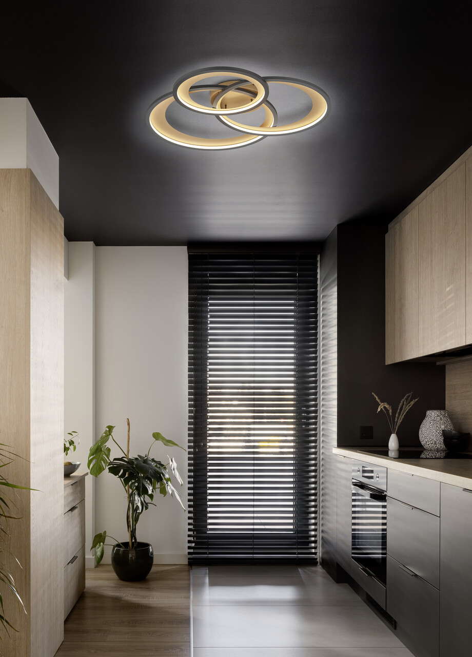Plafoniera Granada, TRIO, 71.5x63.5x10.5 cm, 36W, 1x SMD, metal, negru mat/auriu