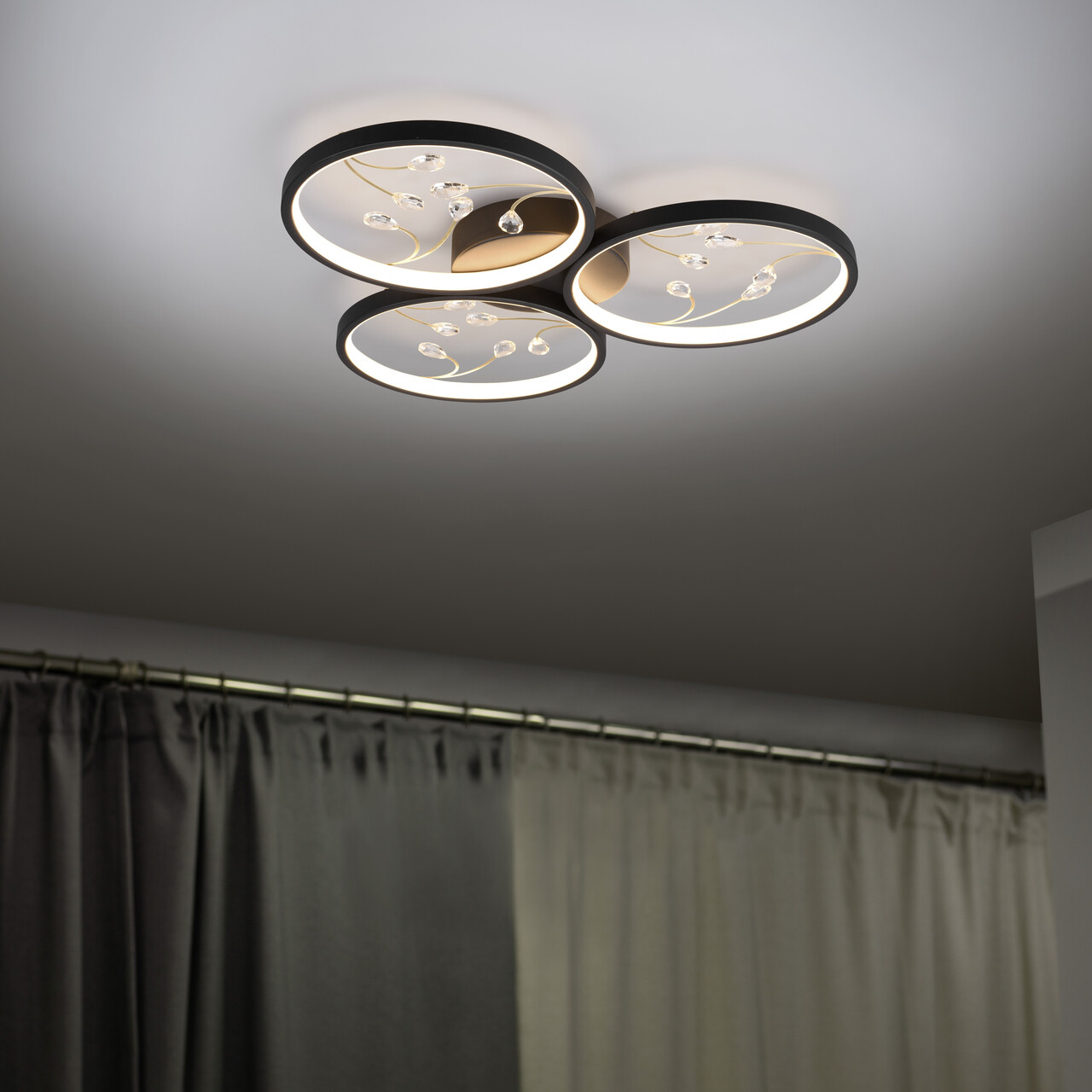 Plafoniera Groovy, TRIO, 62x6 cm, 30W, 1x SMD, metal, negru mat