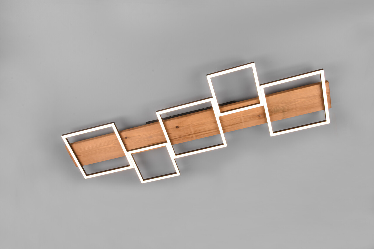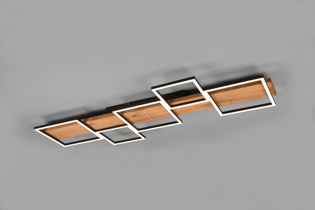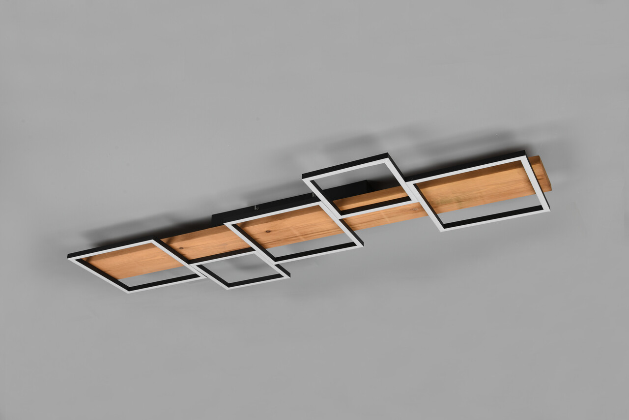 Plafoniera Harper, TRIO, 115x44.5x7.5 cm, 42W, 1x SMD, metal/lemn, natur/negru mat