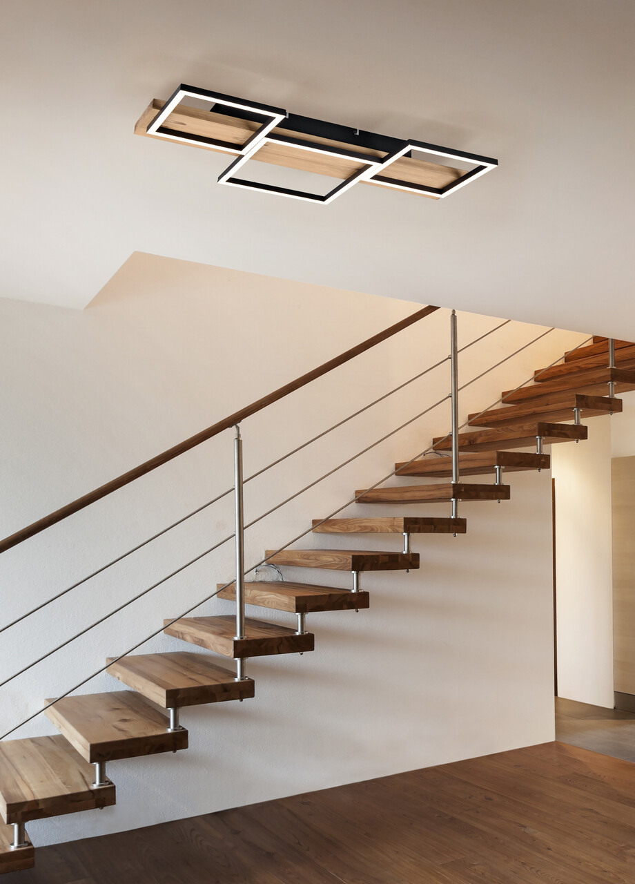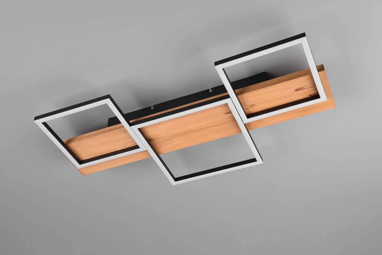 Plafoniera Harper, TRIO, 65x34.5x7.5 cm, 30W, 1x SMD, metal/lemn, natur/negru mat