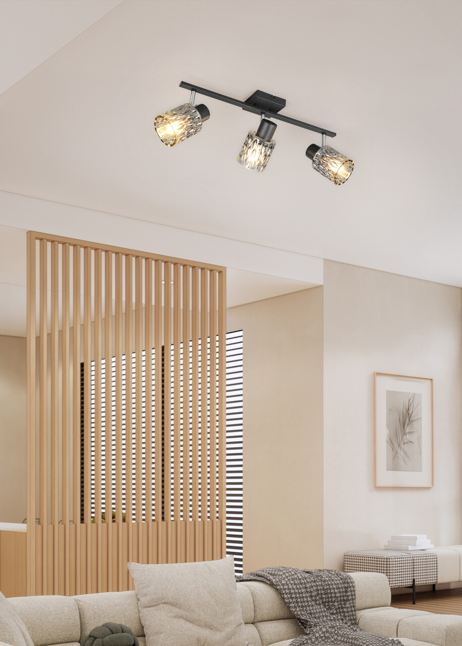 Plafoniera Jack , RL, 55x16x21 cm, 10W, 3x E27, metal, negru/gri