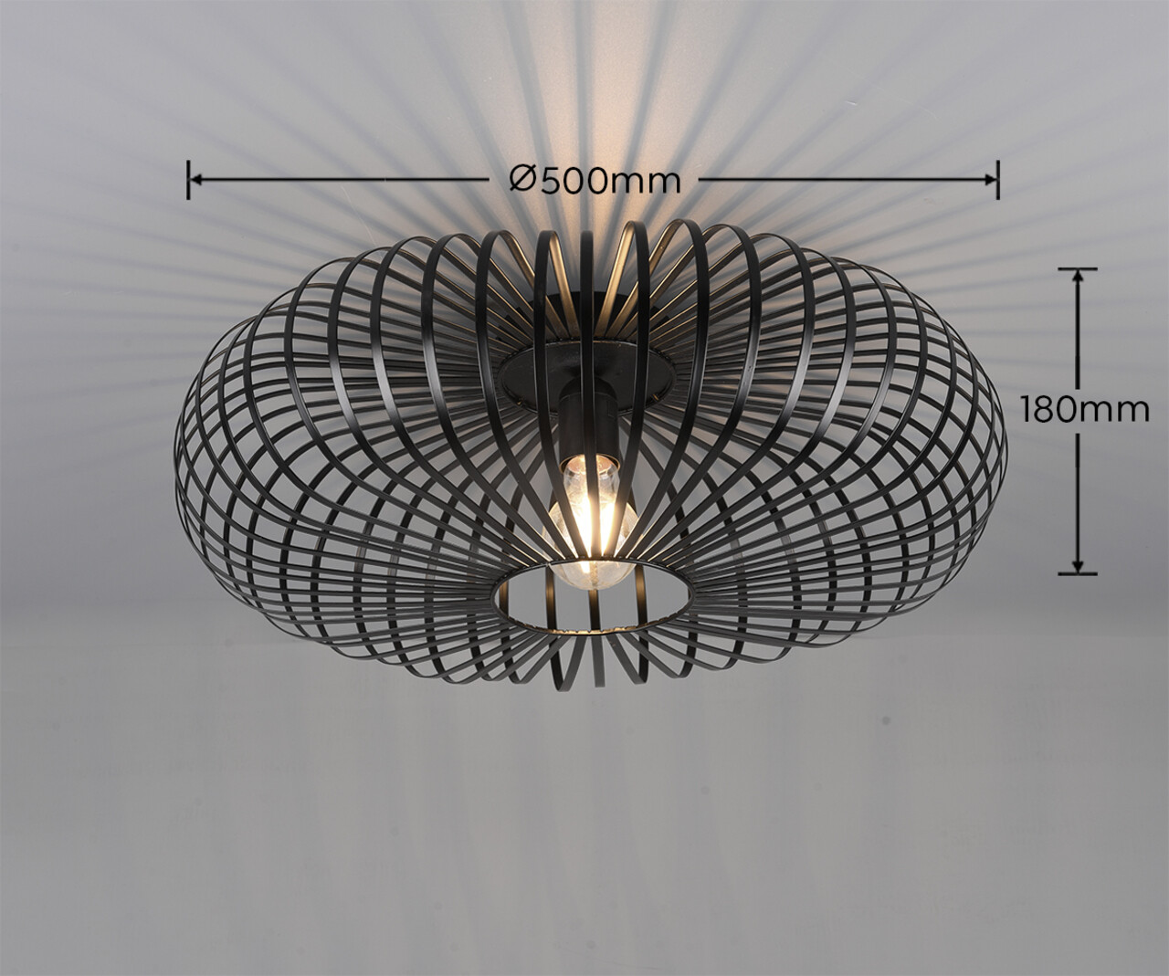 Plafoniera Johann, TRIO, 50x18 cm, 60W, 1x E27, metal, negru mat
