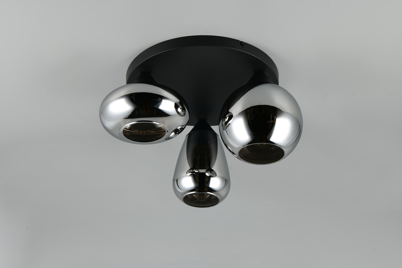 Plafoniera Lumina, TRIO, 35x24.5 cm, 10W, 3x E14, metal, negru mat/argintiu