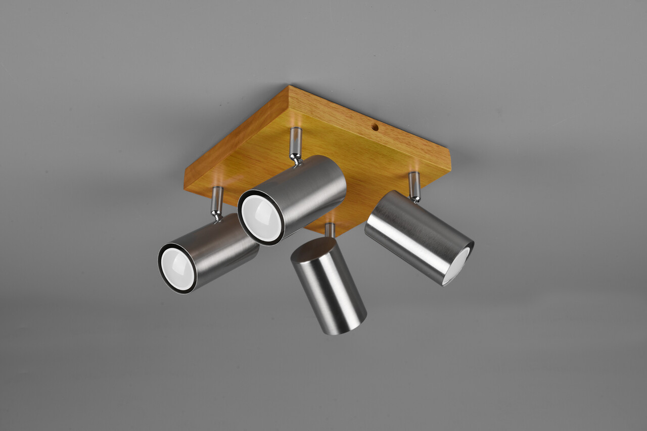 Plafoniera Marley, TRIO, 22x22x16 cm, 35W, 4x GU10, metal, argintiu mat/natur