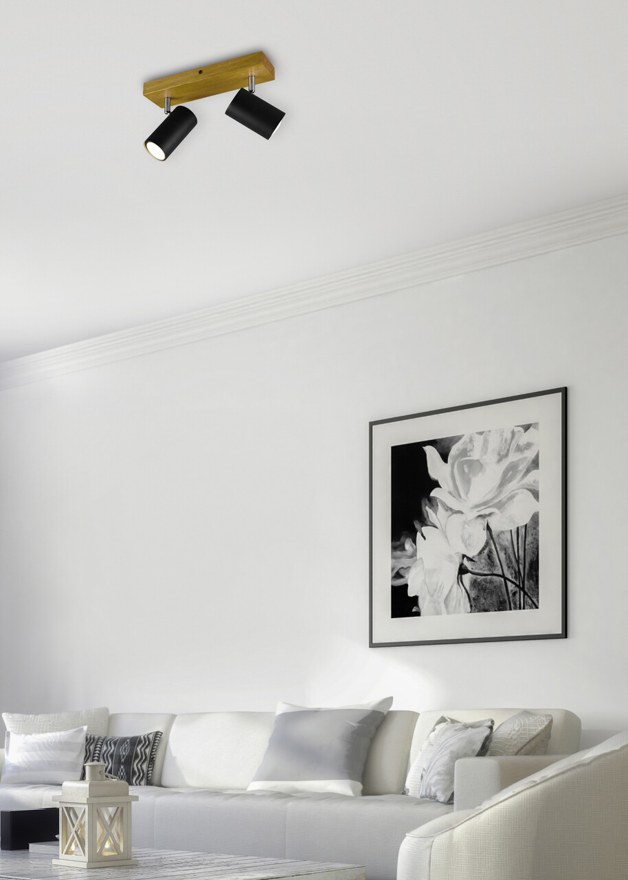 Plafoniera Marley, TRIO, 26x9x16 cm, 35W, 2x GU10, metal, negru mat/natur