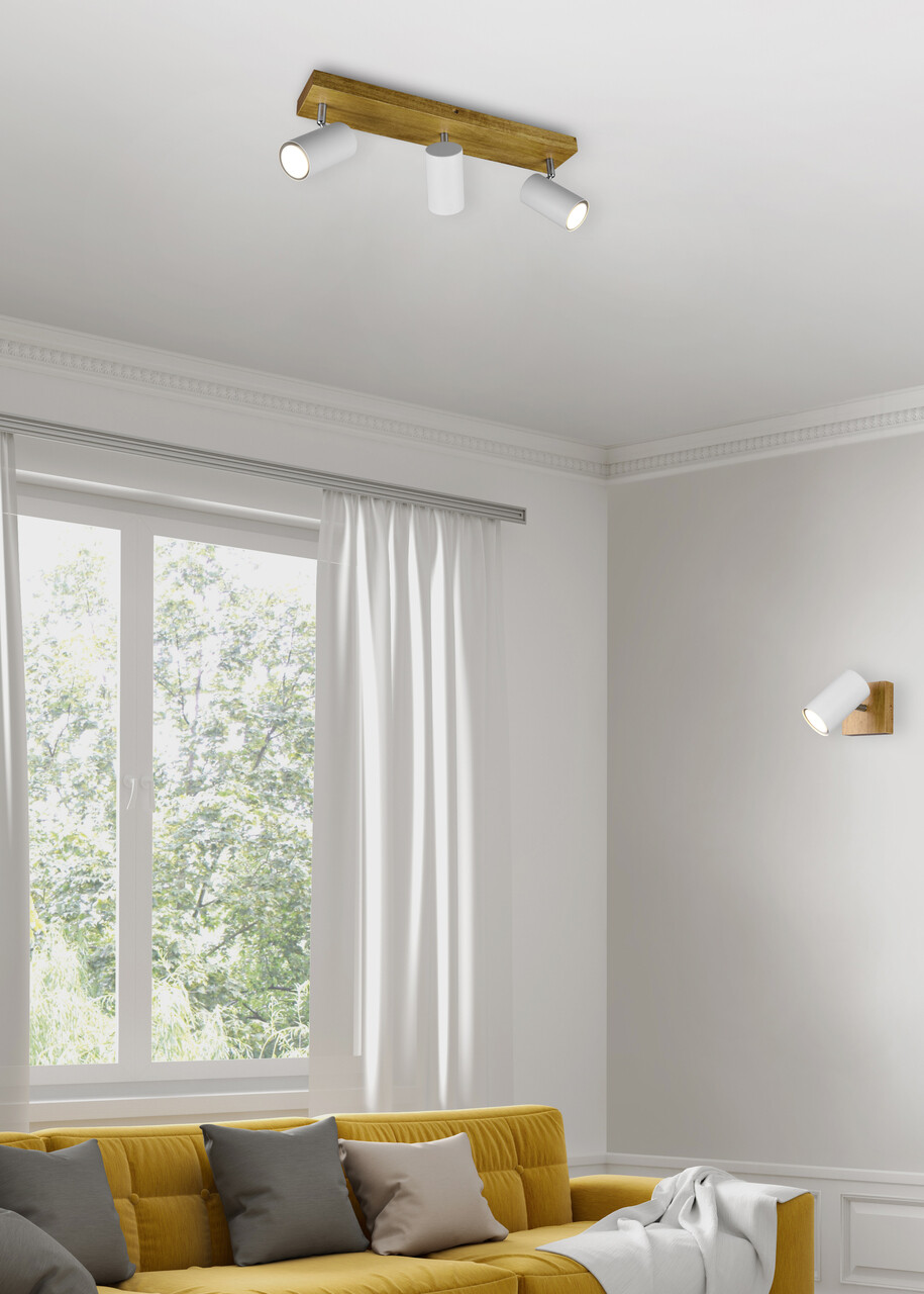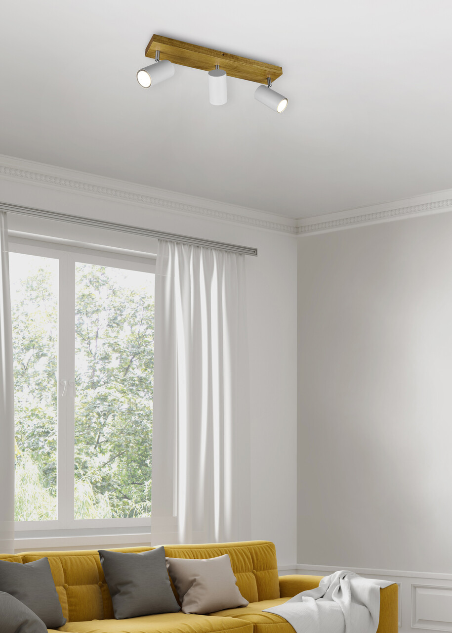 Plafoniera Marley, TRIO, 44x9x16 cm, 35W, 3x GU10, metal, alb mat/natur