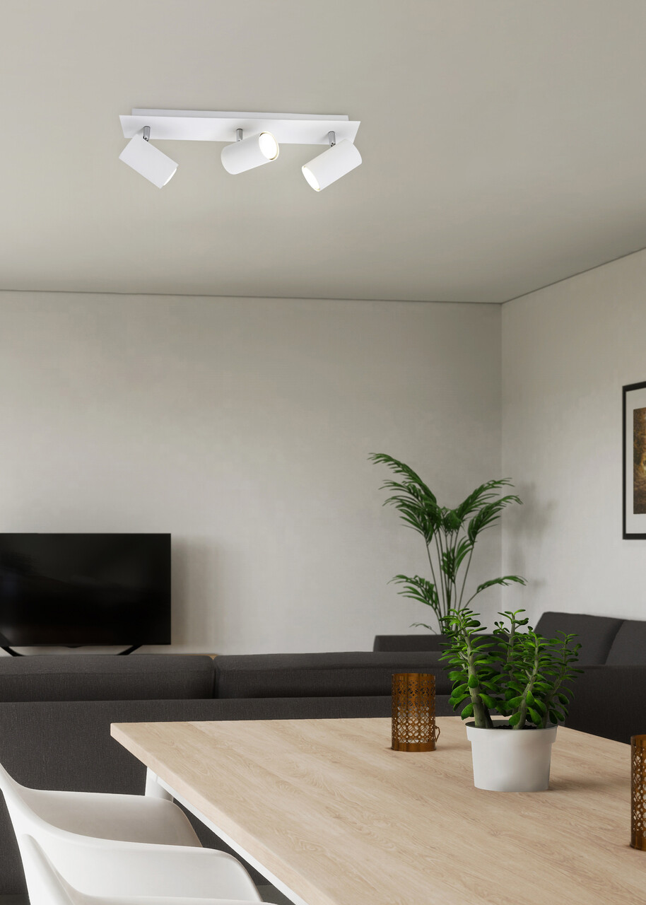 Plafonierele MARLEY cu 3 lumini va ofera iluminat personalizat in camera de zi sau in hol. Designul purist se adapteaza perfect oricarui stil de mobilier contemporan. Farurile pot fi rotite independent unele de altele, astfel incat sa puteti directiona lumina reflectoarelor dupa cum doriti. Plafoniera poate fi combinata cu orice schema de culori existenta, facand-o minunat de usor de integrat in casa ta. Pentru iluminarea cu economie de energie, se recomanda utilizarea unui iluminator LED. Acestea sunt o alternativa optima la lampile cu halogen conventionale si reprezinta o inalta calitate a luminii si economii de energie de pana la 80%. In plus, lampile cu LED va ajuta sa beneficiati de o durata lunga de viata, generare scazuta de caldura si, in acelasi timp, sa protejati mediul inconjurator.