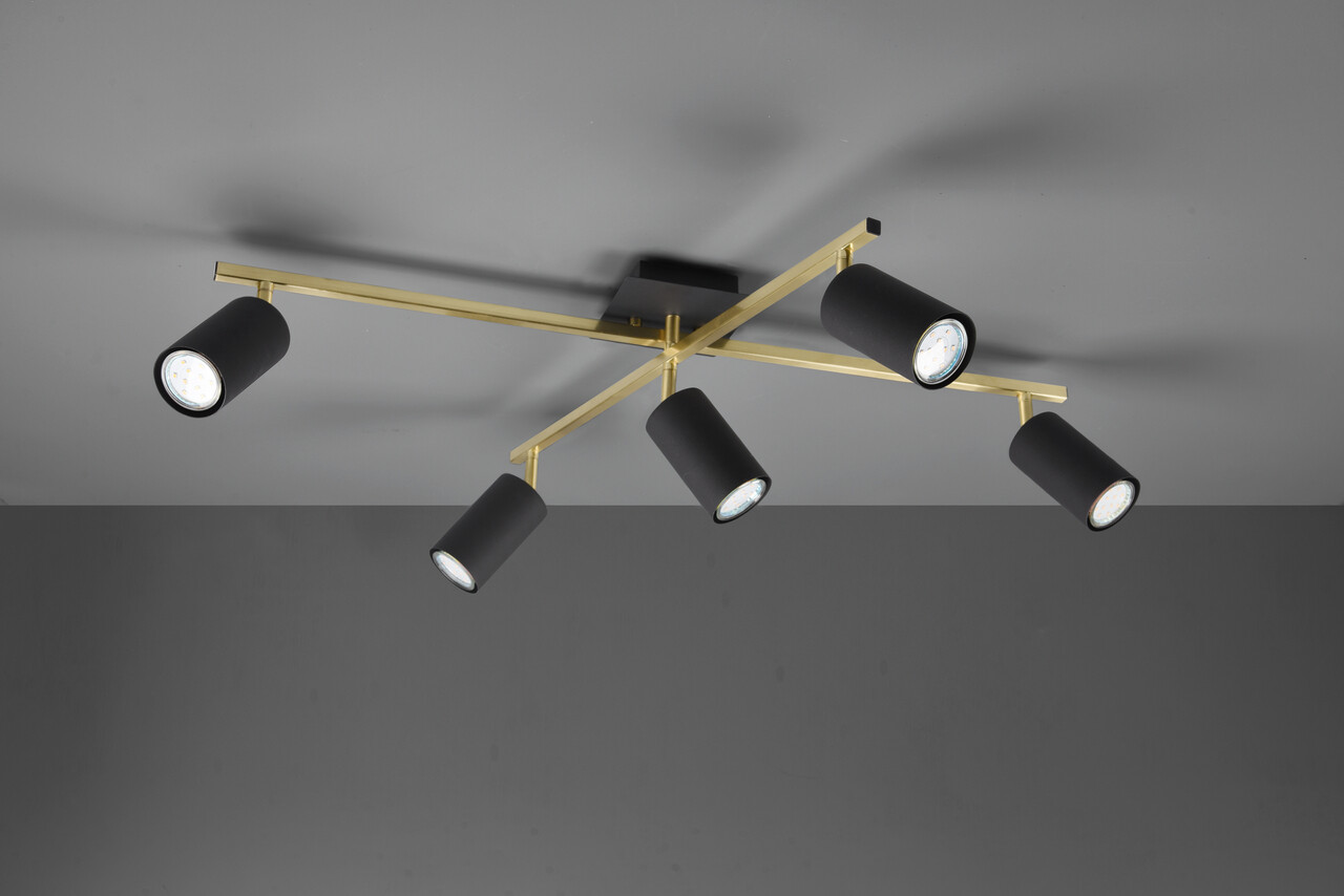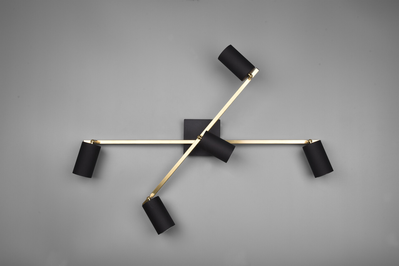 Plafoniera Marley, TRIO, 77.4x57.4x22.4 cm, 35W, 5x GU10, metal, negru/auriu