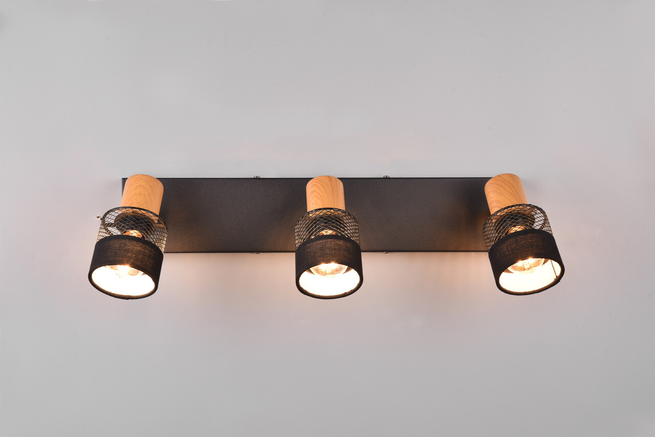 Plafoniera Nandini, TRIO, 45x8.5x17 cm, 10W, 3x E14, metal, negru mat/natur