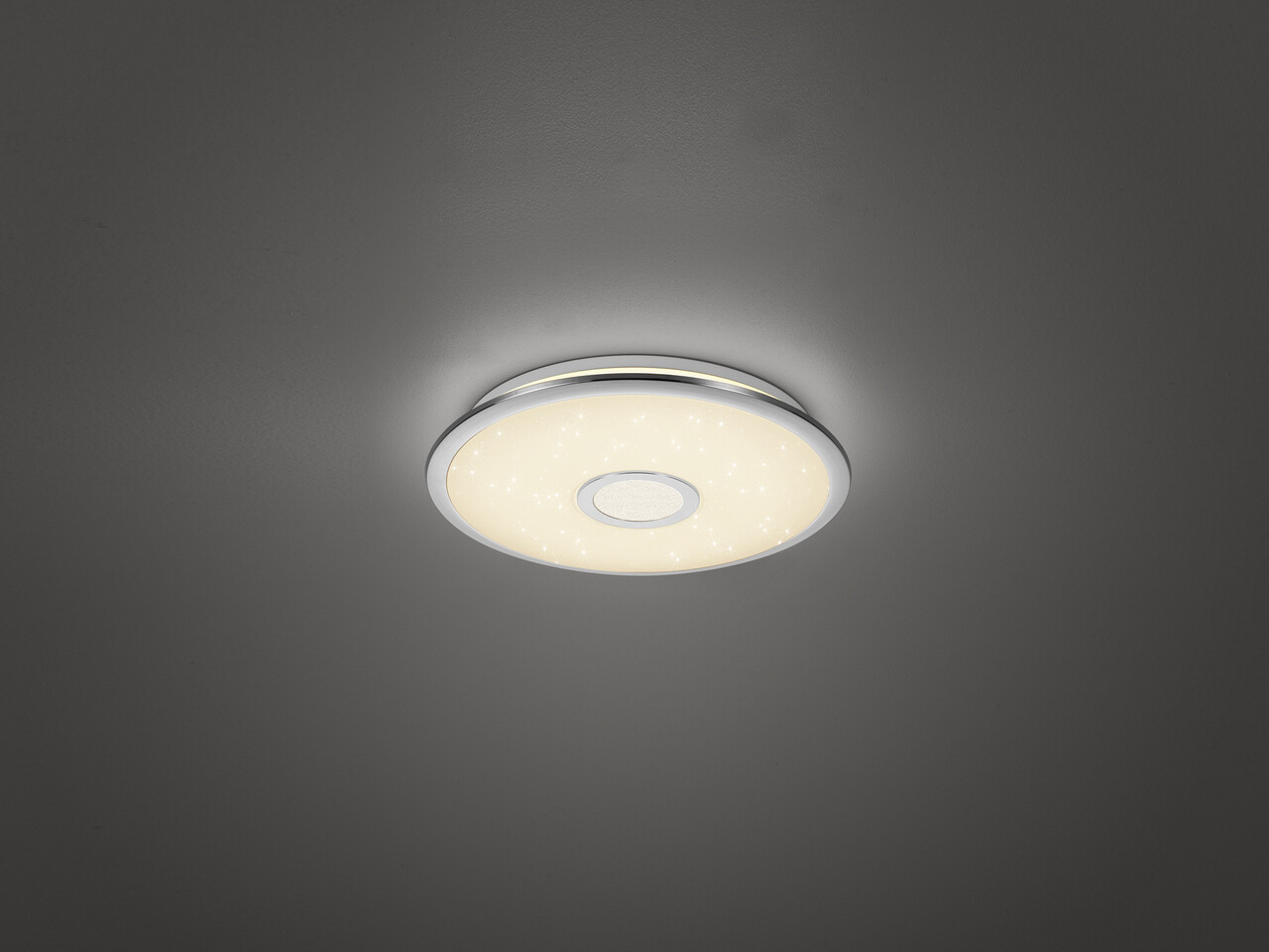 Aceasta plafoniera OSAKA unica promite un design de iluminat intr-o forma perfecta. Corpul de iluminat LED rotund este un adevarat artist al schimbarii rapide si va indeplineste fiecare dorinta de iluminat. Cu designul sau atragator si diametrul mare, corpul de iluminat va deveni rapid noul punct de atractie in spatiul dvs. de locuit. Forma rotunda completeaza aspectul armonios. Asemenea unui cer instelat sclipitor, aceasta plafoniera are o varietate de functii. Este reglabila si este echipata cu un schimbator de temperatura de culoare (3000K pana la 5500K) si o lumina de noapte. Cand lumina de noapte este activata, efectul de cer instelat isi intra in joc. Toate aceste functii pot fi controlate convenabil folosind telecomanda inclusa in setul de livrare, sporind factorul de confort in camerele dvs. Posibilele utilizari ale acestei plafoniere sunt incredibil de diverse: fie ca iluminare eleganta de tavan in holuri si coridoare, ca plafoniera contemporana in sufragerie sau ca o lampa de design deosebita in dormitor. Combinatia dintre carcasa de culoare cromata si abajurul alb permite combinarea luminii cu alte concepte de culoare diferite, facand-o minunat de usoara de integrat in casa dvs. In plus, corpurile de iluminat dispun de tehnologie LED moderna care garanteaza o calitate inalta a luminii. Sursele de lumina LED se caracterizeaza printr-o durata lunga de viata si o generare redusa de caldura.