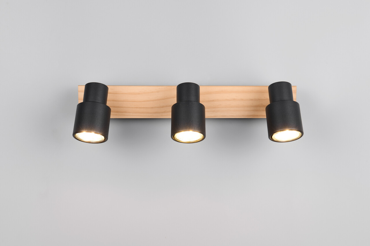 Plafoniera Pierre, RL, 40x6x15 cm, 10W, 3x GU10, metal, negru mat/natur