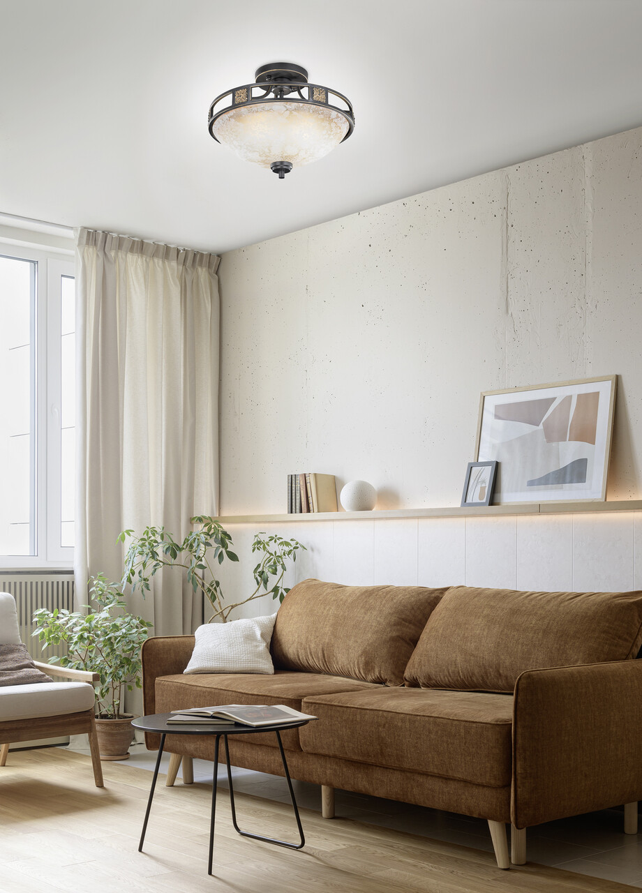 Plafoniera Quinta, TRIO, 42x32 cm, 60W, 3x E27, metal, ruginiu/alb