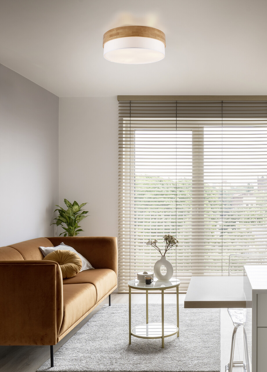 Plafoniera Seasons, TRIO, 50x21 cm, 40W, 3x E27, lemn/textil, natur/alb