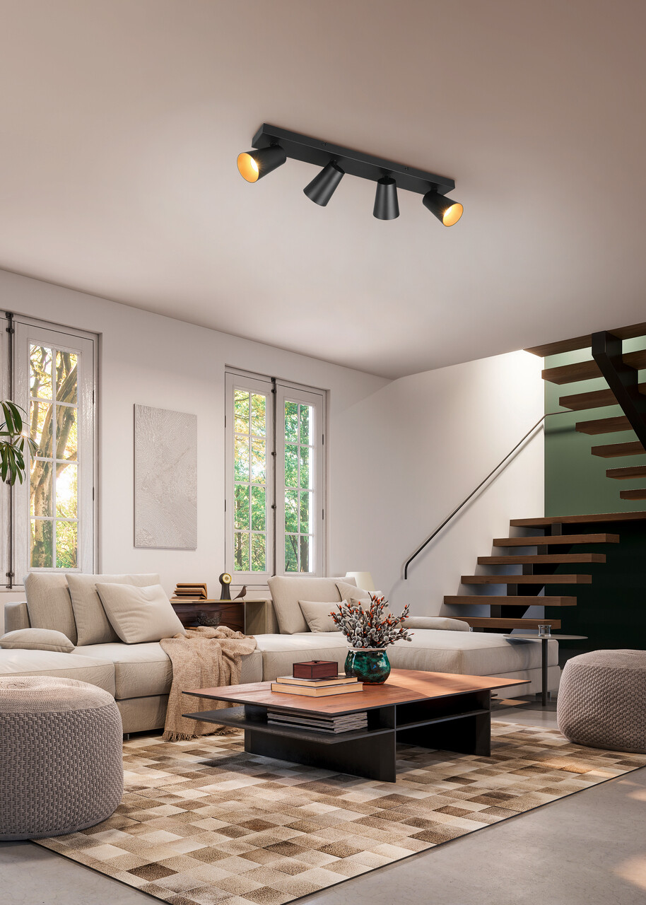 Plafoniera Sharp, TRIO, 64x8.5x16 cm, 10W, 4x GU10, metal, negru mat