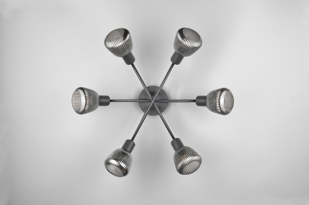 Plafoniera Tarifa, TRIO, 59.5x10.5x25 cm, 10W, 6x E14, metal, negru mat/argintiu