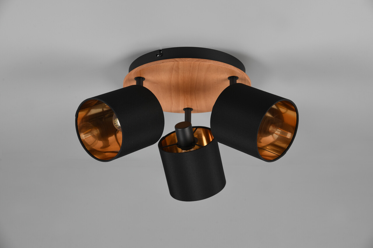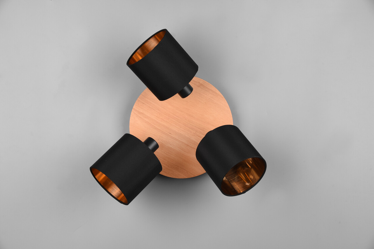 Plafoniera Tommy, RL, 25x12x22.5 cm, 28W, 3x E14, metal, negru/natur