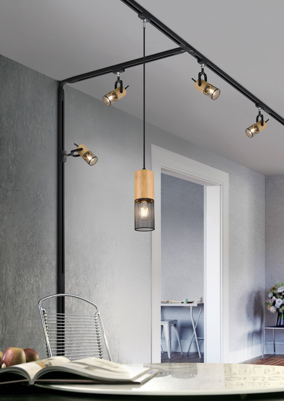 Plafoniera Tosh, TRIO, 15.3x7.5x16 cm, 25W, 1x E14, metal, negru mat/natur