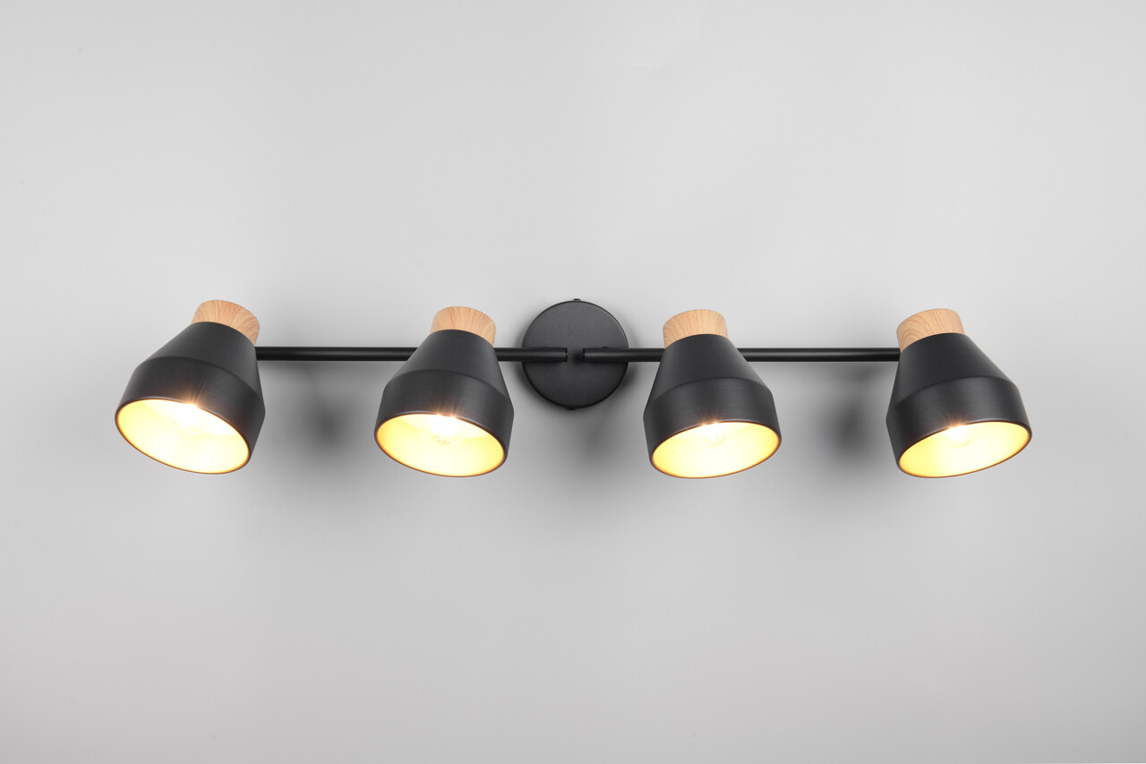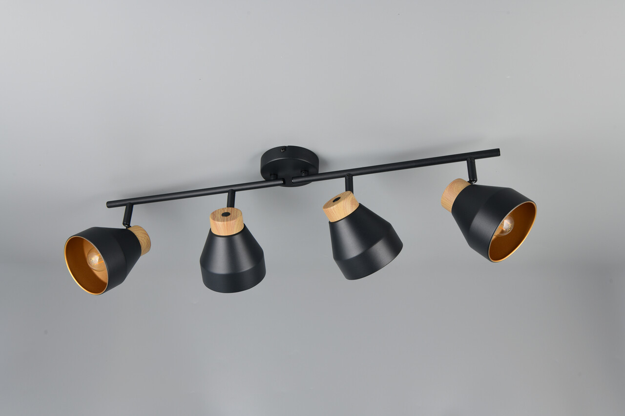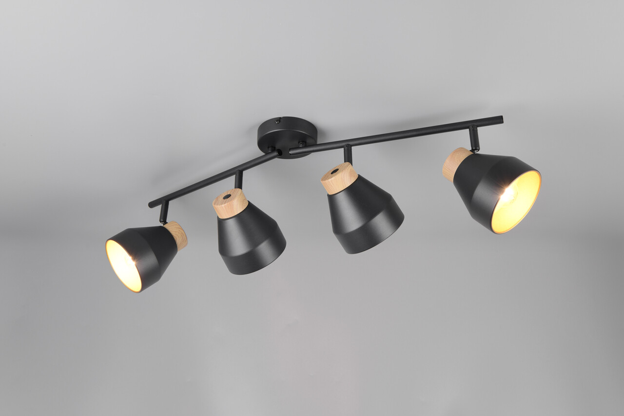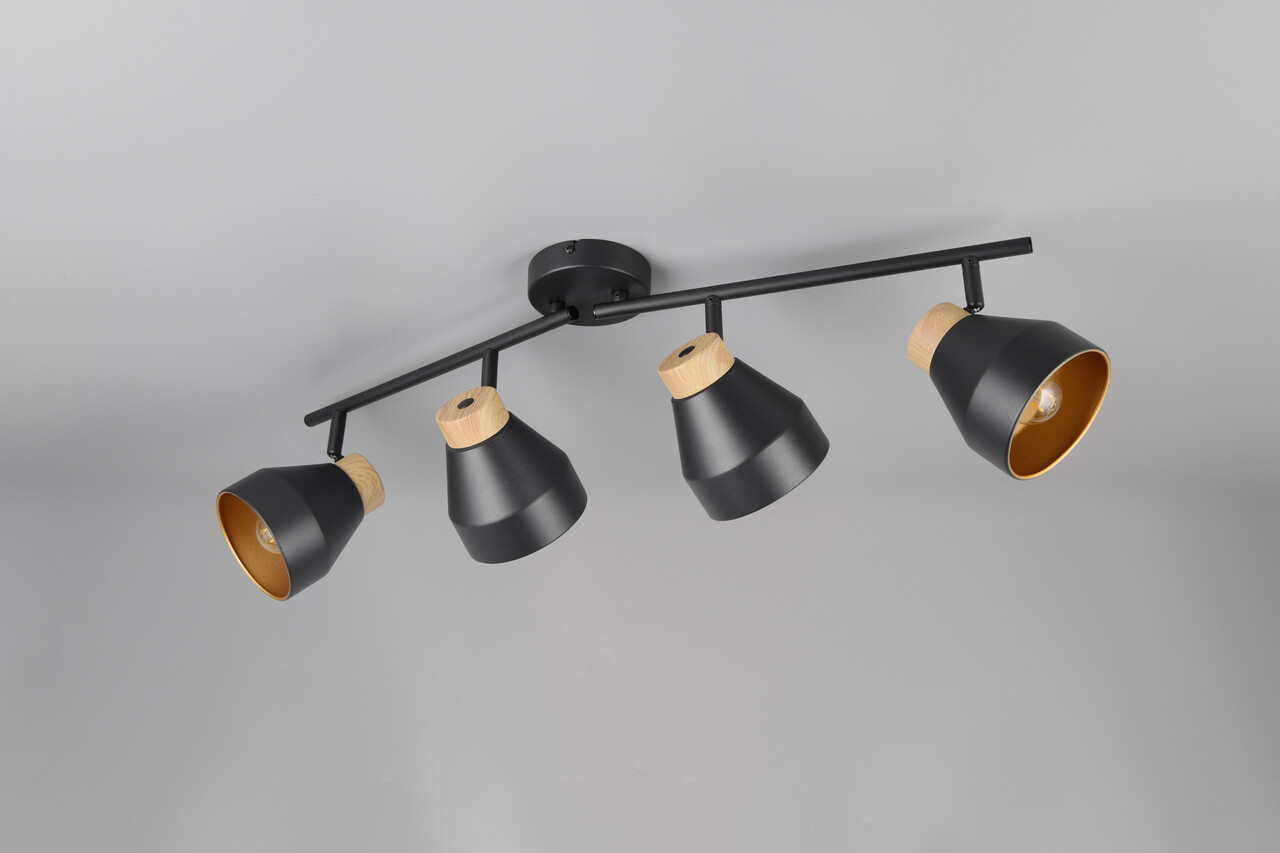 Plafoniera Valentin, RL, 71.5x15x22 cm, 10W, 4x E14, metal, negru mat/natur