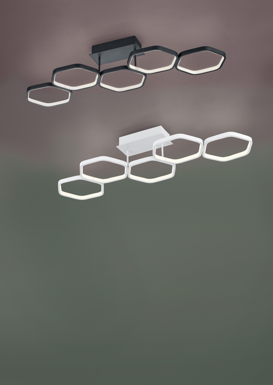 Cu cele cinci inele agatate impreuna, plafoniera VIGO este o adevarata atragere a privirii. Cu designul sau minimalist, plafoniera poate fi folosita in multe incaperi diferite in orice moment si creeaza o ambianta atmosferica. Corpul de iluminat are, de asemenea, un SWITCH dimmer, permitand reglarea luminozitatii de la 100% la 50% si 25% folosind un comutator de lumina conventional. Plafoniera moderna are o latime de 90 cm si o inaltime de 15 cm. Datorita schemei de culori antracit, plafoniera poate fi combinata cu multe stiluri de mobilier. In plus, corpul de iluminat dispune de tehnologie LED moderna care se caracterizeaza prin calitate ridicata a luminii si eficienta energetica. In comparatie cu lampile cu halogen conventionale, se pot economisi pana la 80% din costurile energetice. In plus, sursele de lumina LED au o durata lunga de viata, produc mai putina caldura si protejeaza mediul.