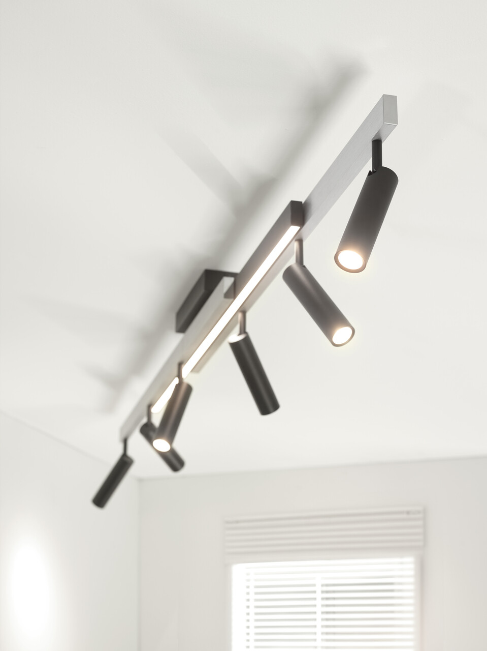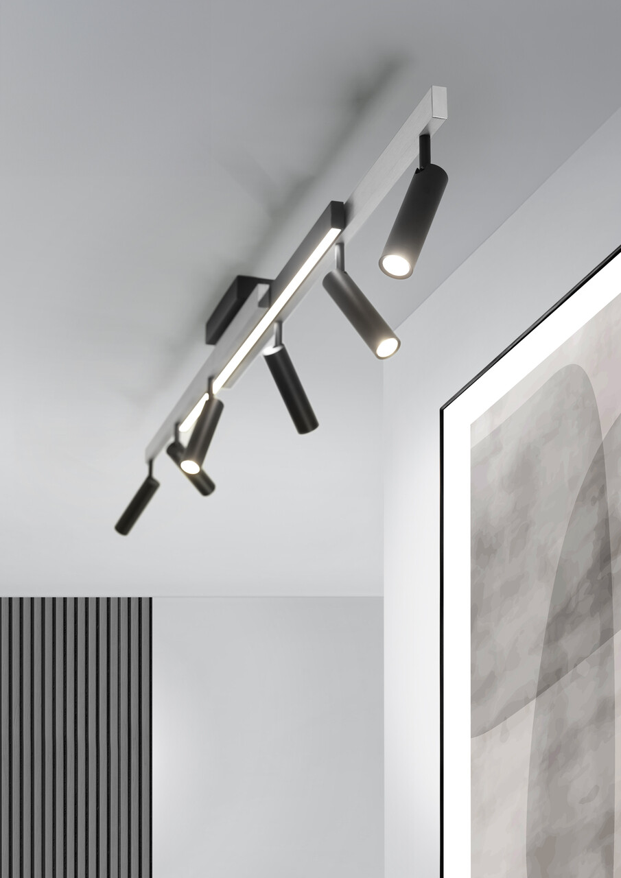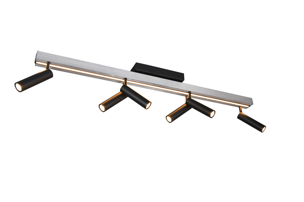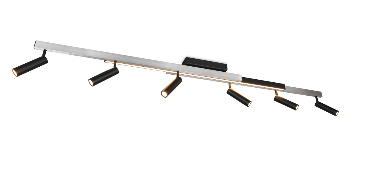 Plafoniera Zeno, TRIO, 180x8.5x15 cm, 5.5W, 18W, 6x SMD, 1x SMD, metal, argintiu lucios/negru