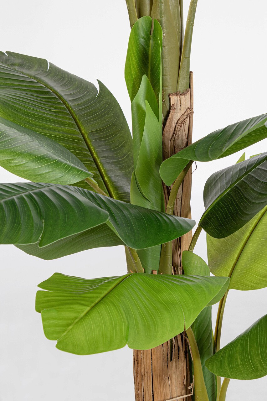 Planta artificiala in ghiveci Banana, Bizzotto, 115 x 120 x 200 cm, 20 frunze, frunze de arbore de cauciuc