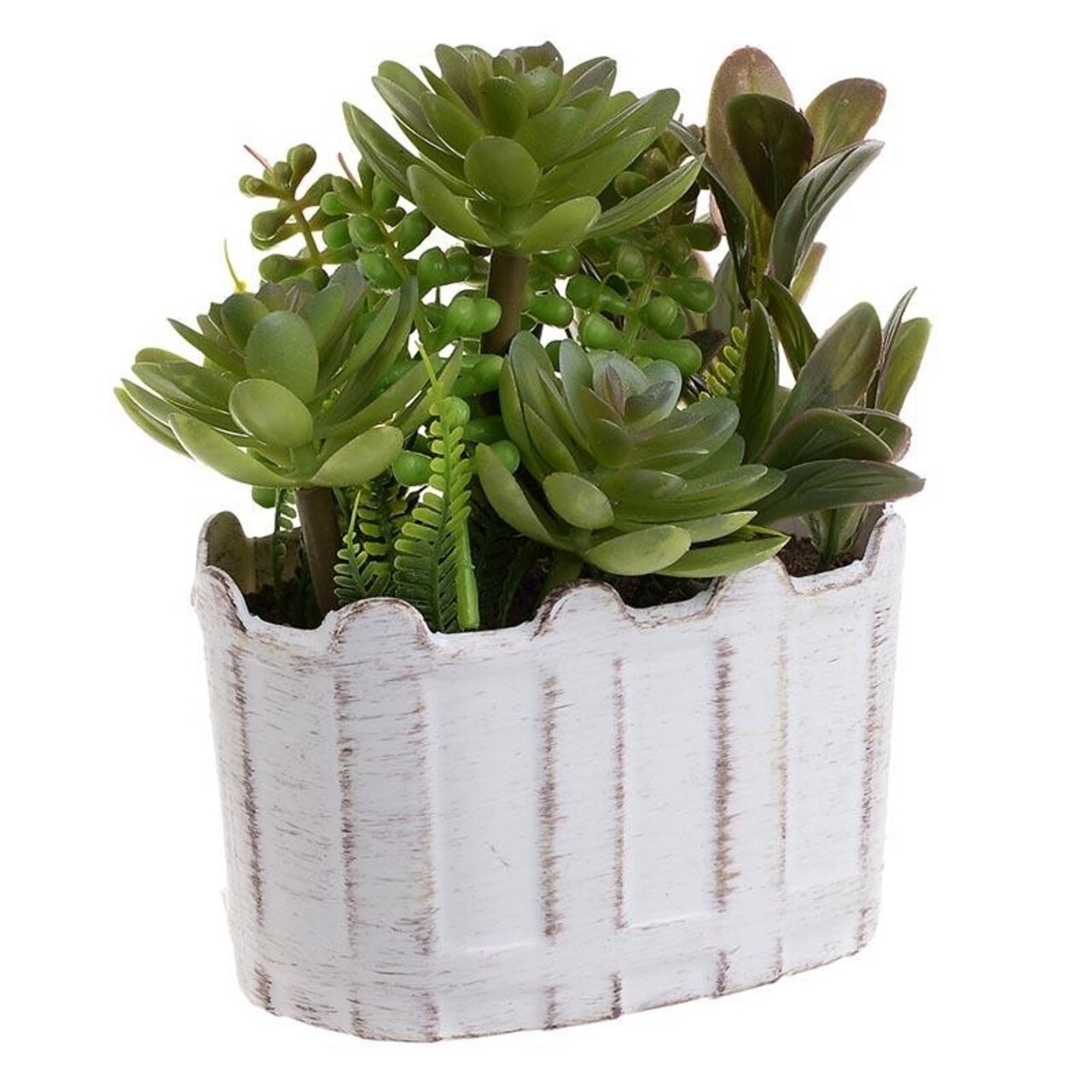 Planta decorativa Succulent, InArt, 16 x 12 x 8 cm, plastic, alb/verde
