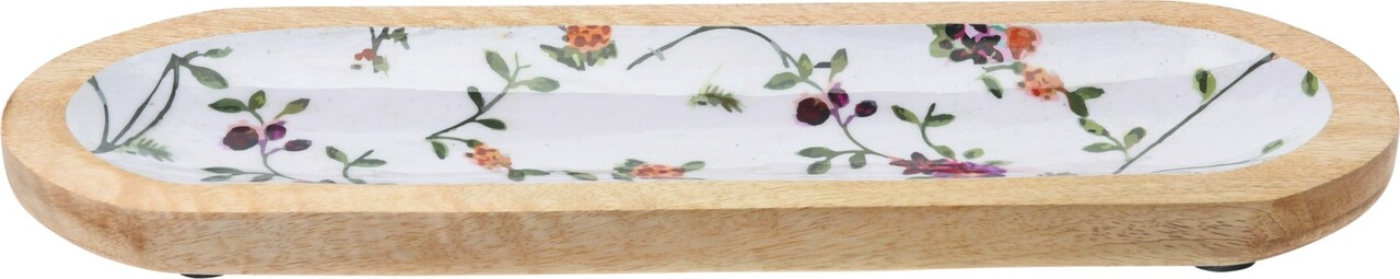 Platou adanc Flower, 38x13x2 cm, lemn, multicolor
