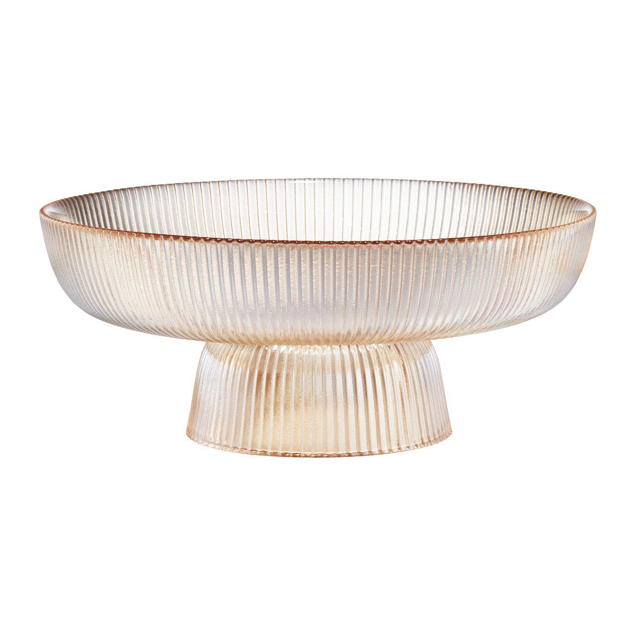 Descoperiti vasul nostru exclusiv de servire din sticla cu model canelat care imbina perfect eleganta cu functionalitatea. Adauga o nota eleganta oricarei mese, imbunatatind atat designul interior modern, cat si cel clasic. Textura delicata cu nervuri ii confera un farmec sofisticat, in timp ce nuantele subtile completeaza fara efort alte articole de masa. Ideal pentru a servi fructe, deserturi sau gustari, acest fel de mancare nu este doar o piesa practica, ci un element decorativ care va captiva atentia oaspetilor tai.
