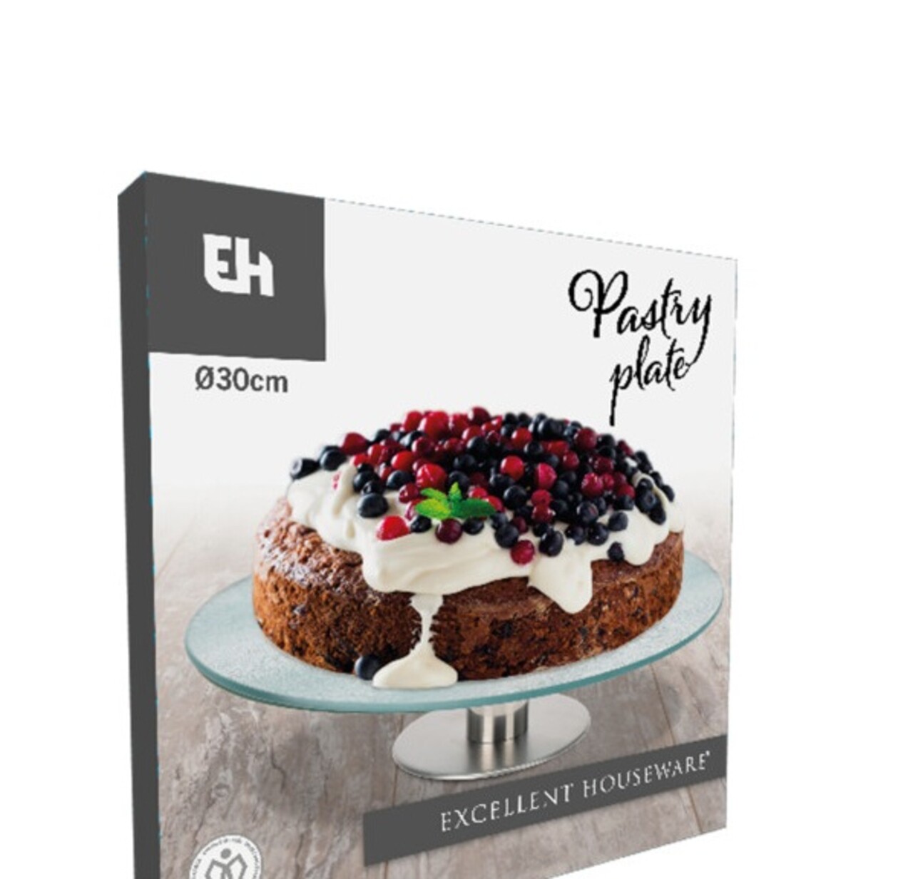 Platou cu picior pentru tort Pastry, Excellent Houseware, 30x7 cm, inox/sticla, argintiu