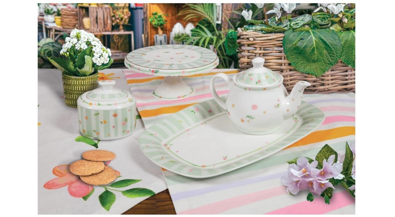 Platou cu picior pentru tort, Polline Green, Brandani, D20.5x9 cm, portelan