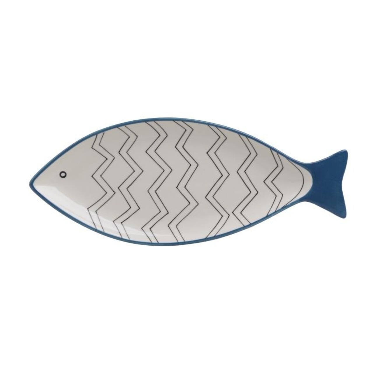 Platou pentru gustari Fish, InArt, 42.5x17x3 cm, ceramica, albastru/alb