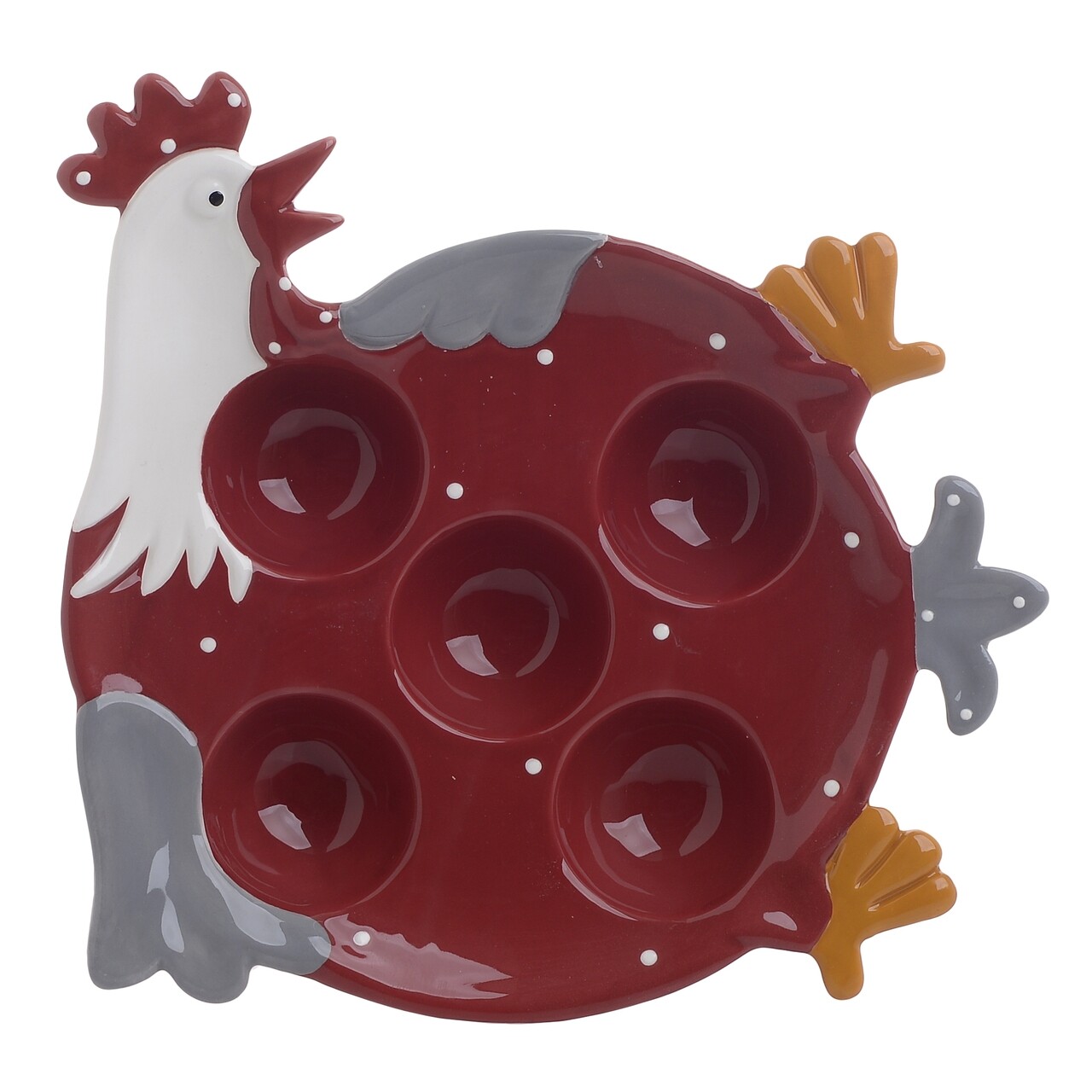 Platou pentru oua Red Hen, InArt, 20x19.6 cm, ceramica, rosu