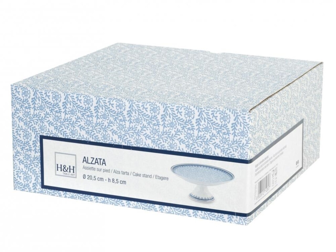 Platou pentru prajituri Alzata Blue Dream, H&H, Ø20 x 8.5 cm, portelan, alb