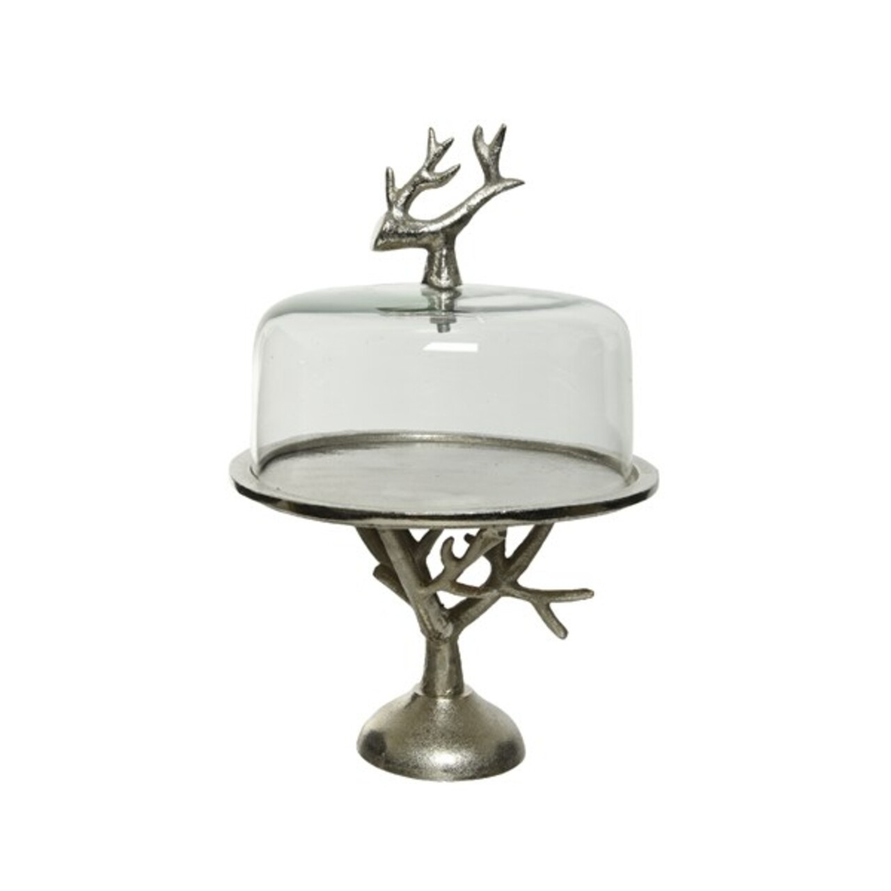 Platou pentru prajituri cu capac Antlers, Decoris, 27x37cm, sticla/aluminiu, argintiu
