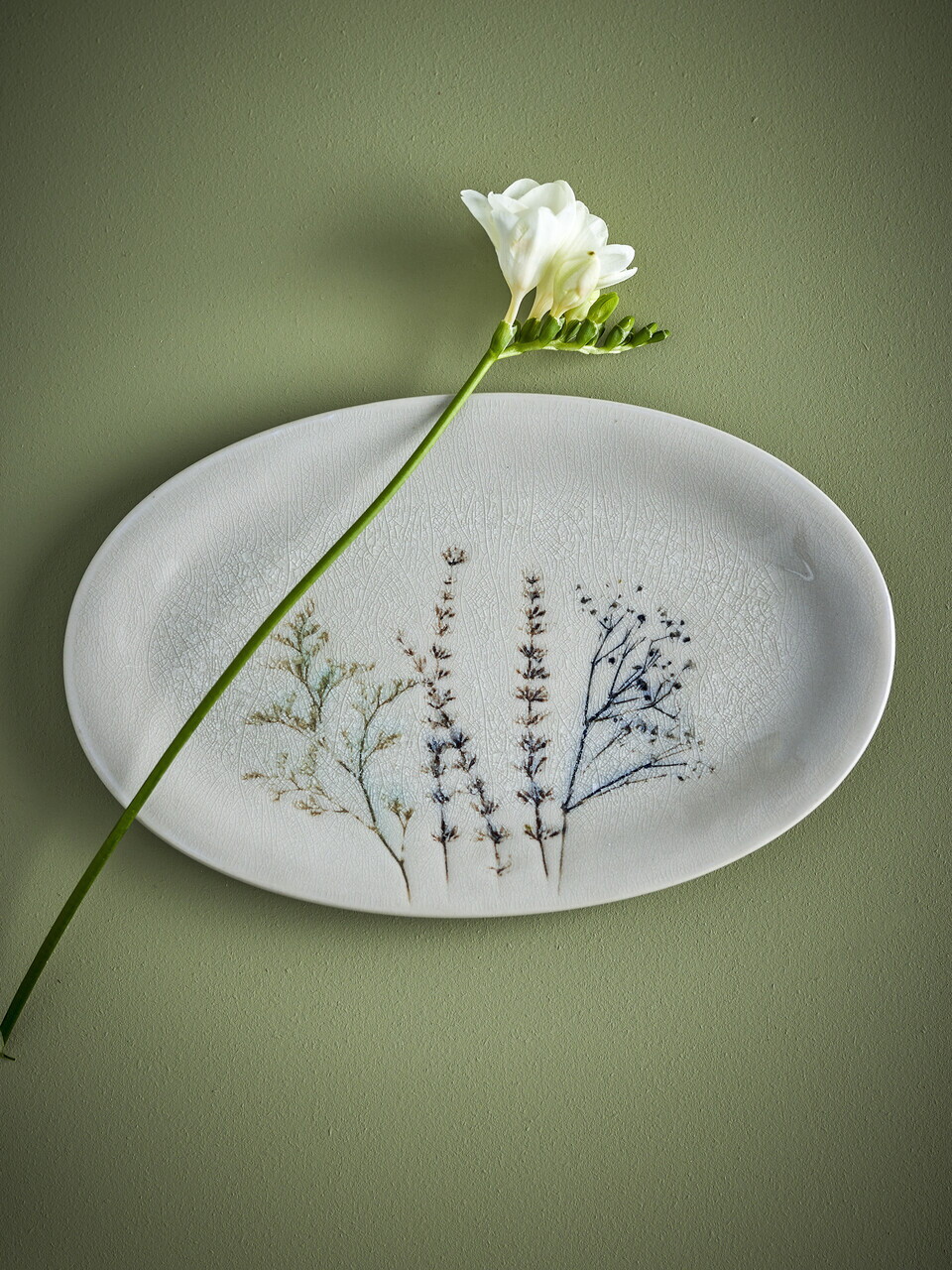 Platou pentru servire, Bloomingville, Bea, 28.5x18x2 cm, ceramica, natural