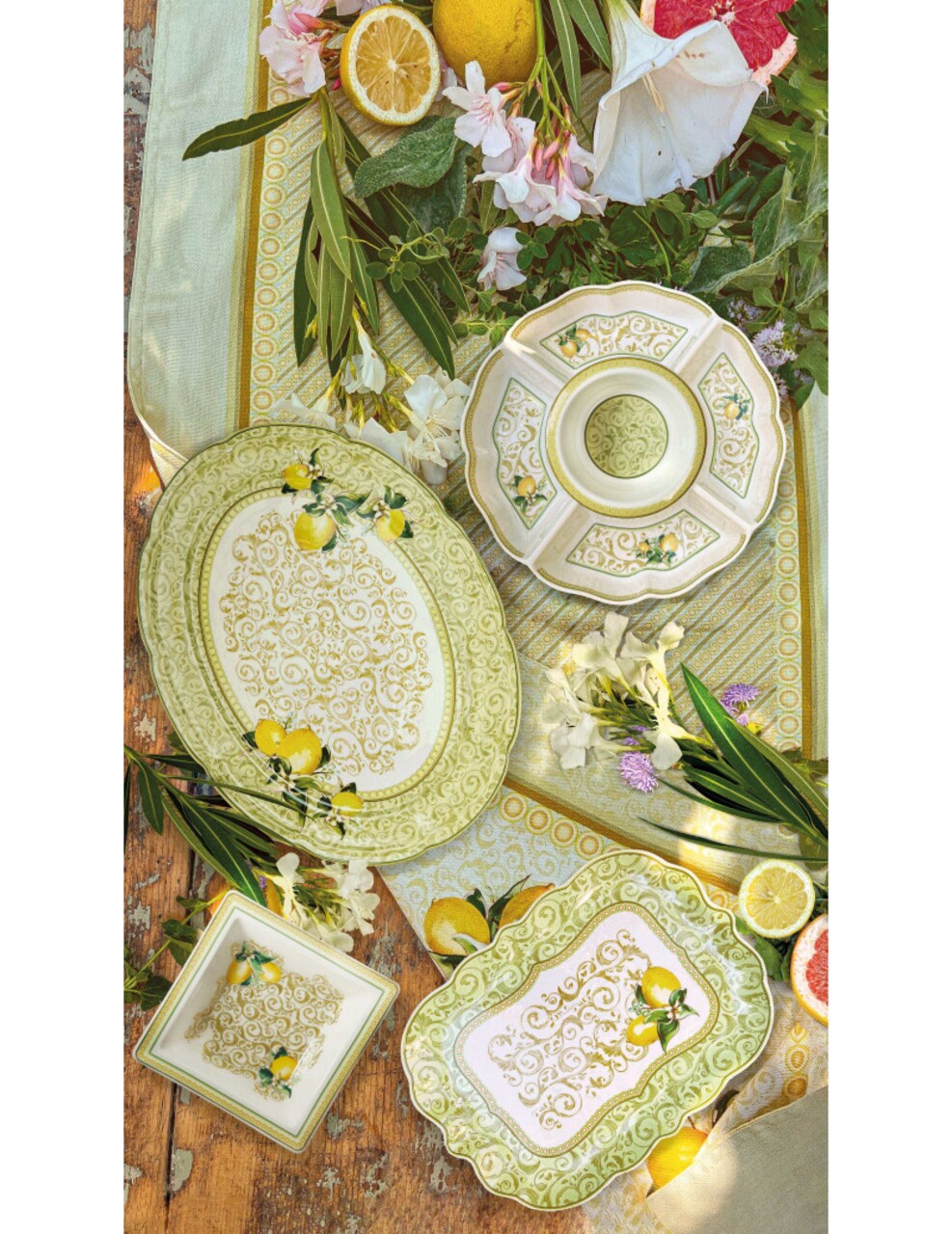 Proaspata, eleganta, delicata: colectia Limoni reflecta peisajele mediteraneene, unde natura vesnic verde se combina cu florile si fructele pentru a crea un paradis de parfumuri si nuante. Decor elegant si culori stralucitoare combinate intr-un set de articole de masa si de uz casnic concepute pentru a regenera mintea si spiritul.